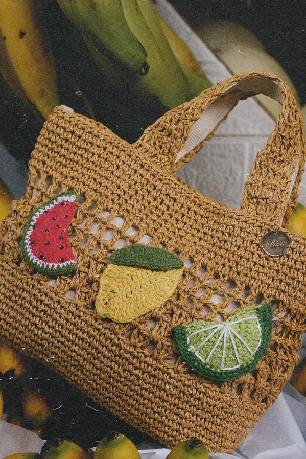 Este bolso artesanal, elaborado en cinta y con forro de algodón, combina tradición y estilo moderno. Incluye asa corta y asa larga tejida, ambas cómodas y resistentes, adornadas con un alegre detalle de frutas que lo hace único. Perfecto para darle un toque fresco y original a tu look en cualquier ocasión.