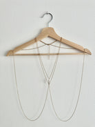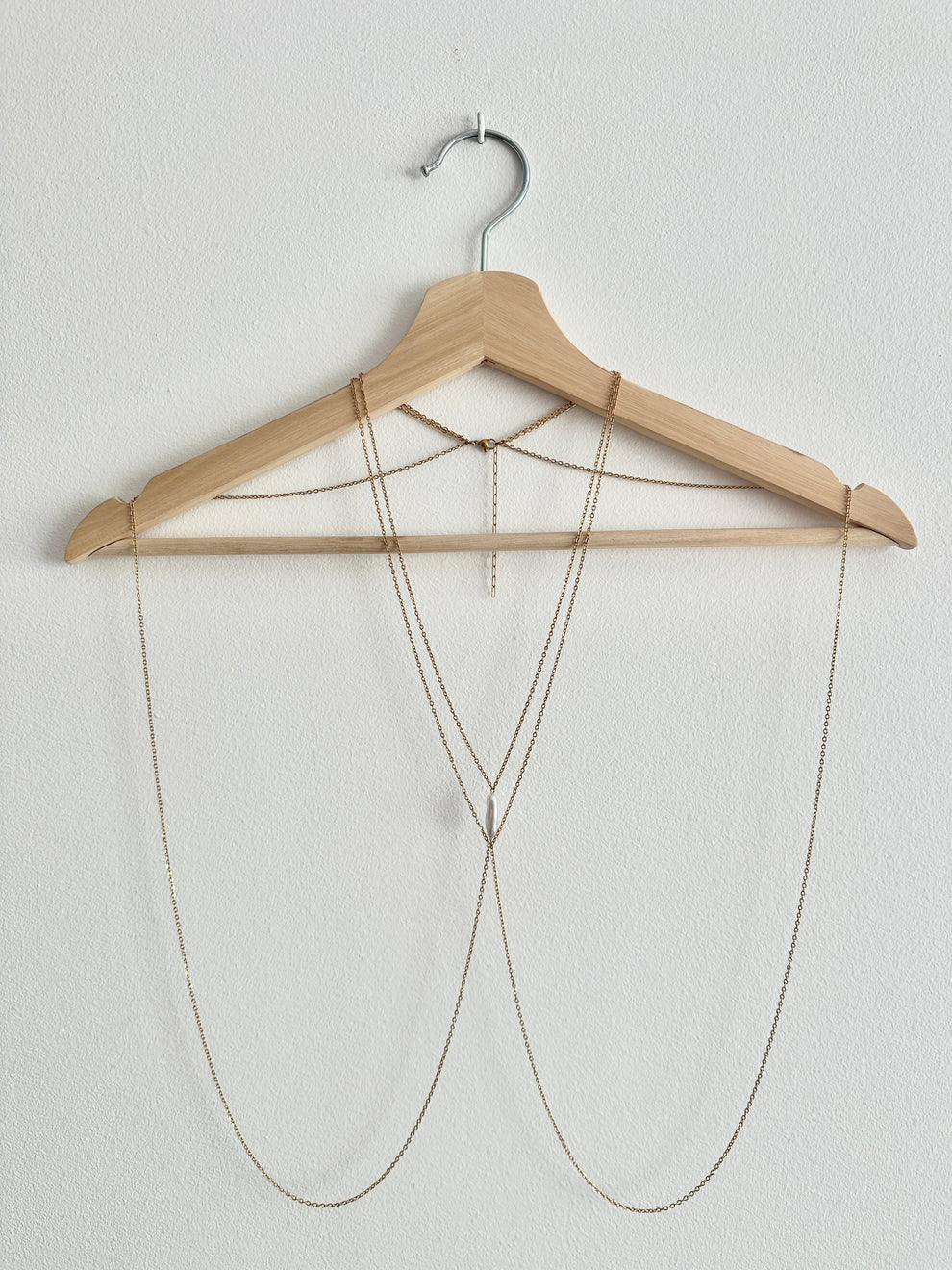 Pecherita de cadena de acero inoxidable y perla en el centro.