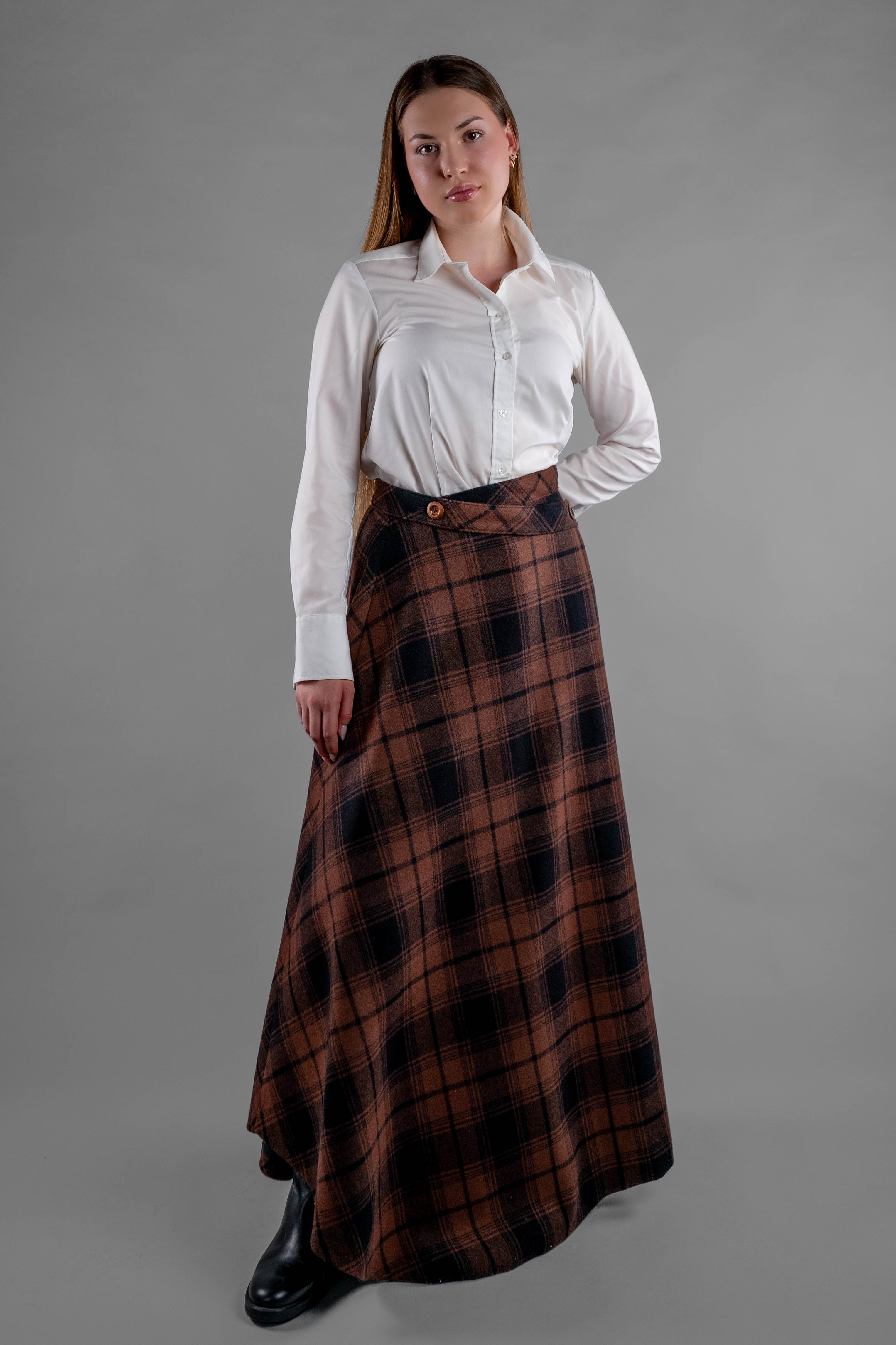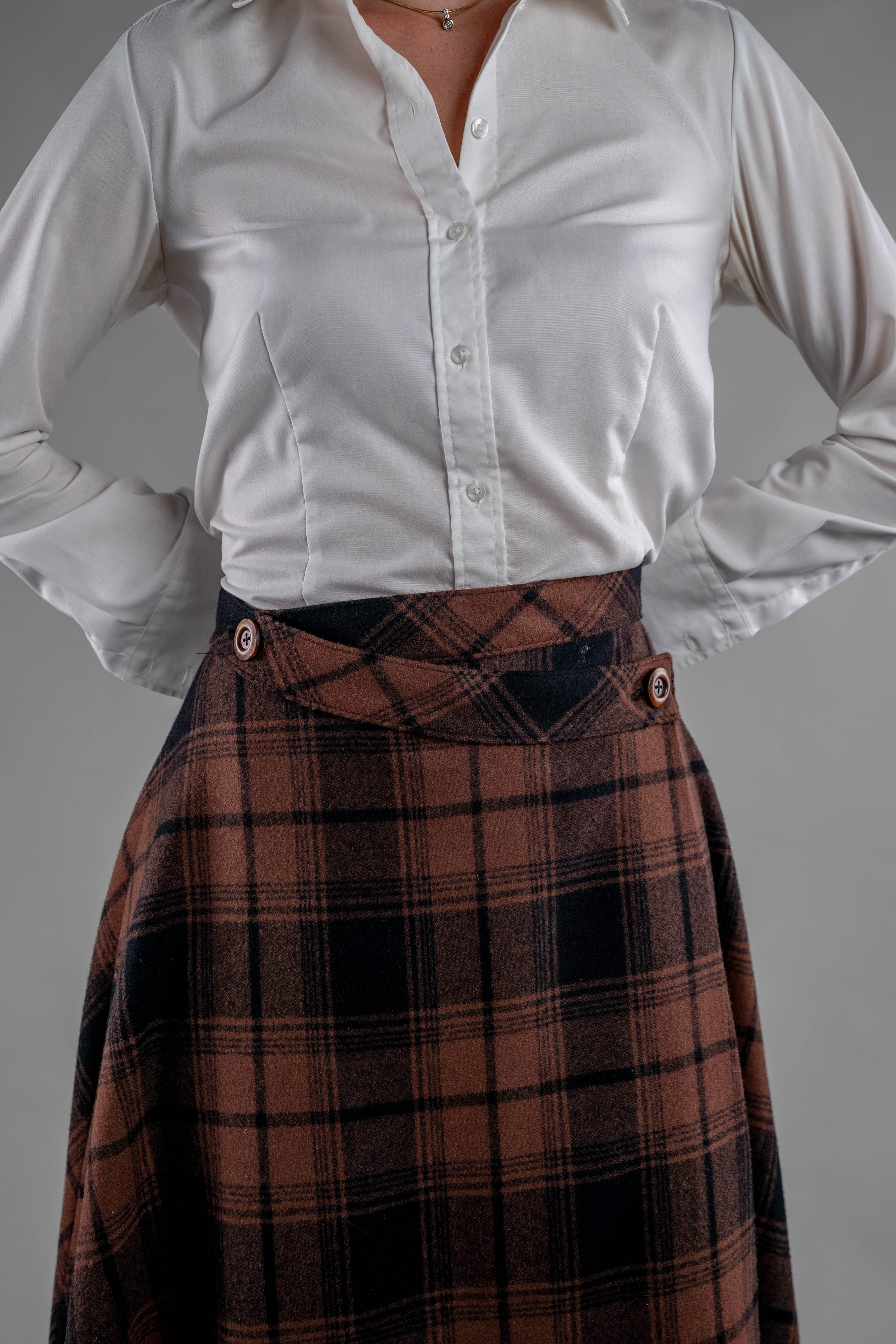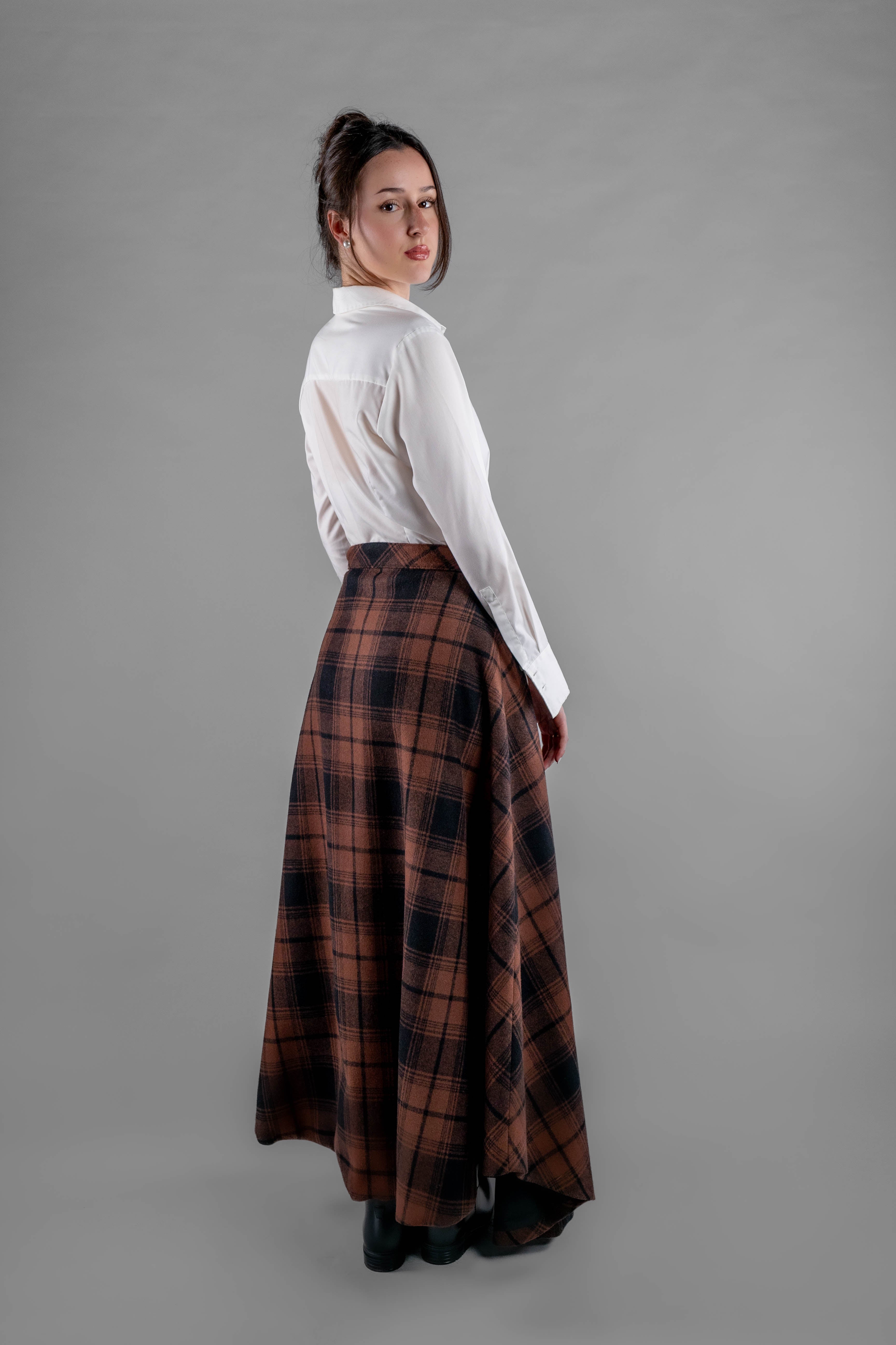 Ideal para combinar con botas y prendas de punto en días fríos, o con camisas ligeras para un look más urbano y sofisticado. Una pieza versátil que une tradición y modernidad en cada detalle.