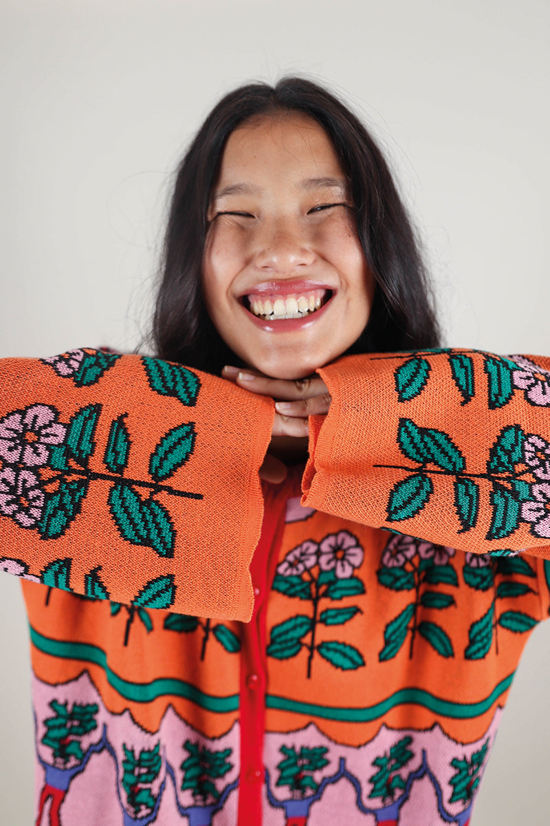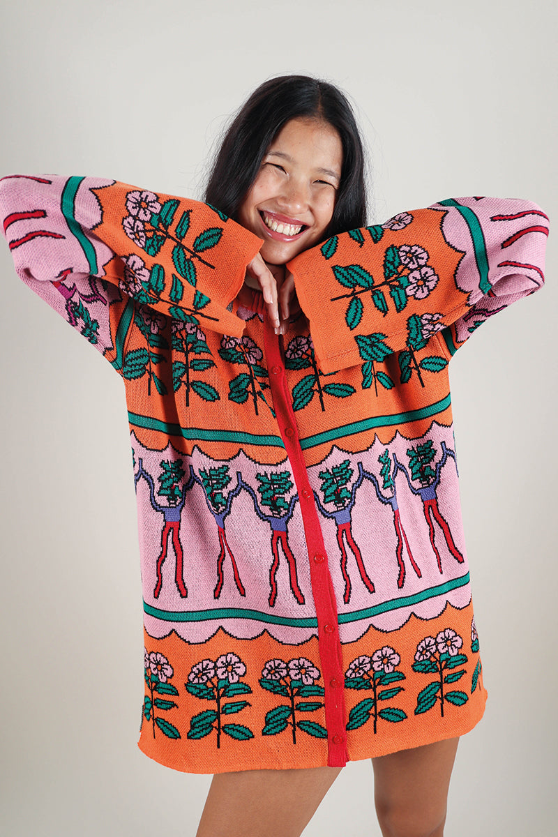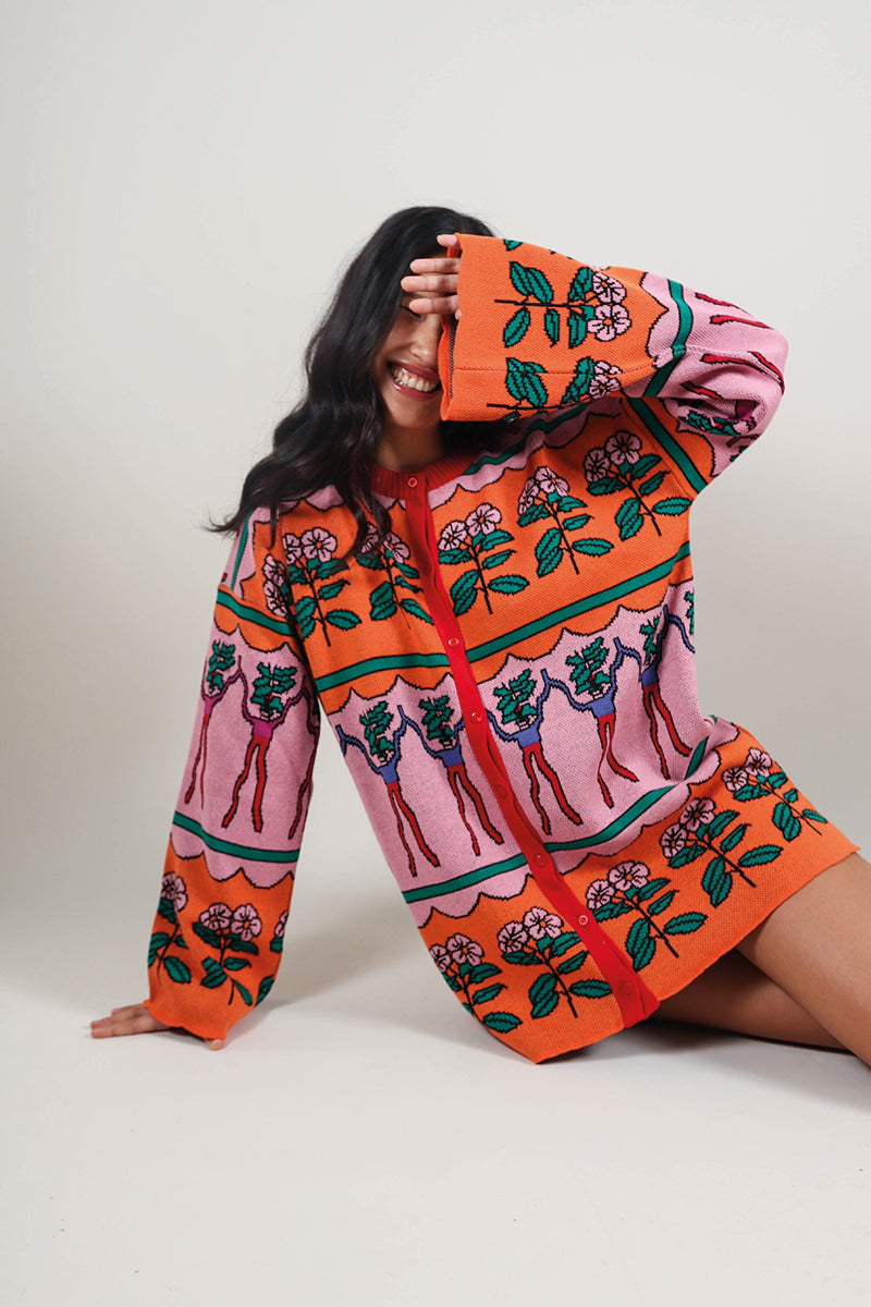 Long sleeve cardigan with 8 buons at the front with cuts on each side.