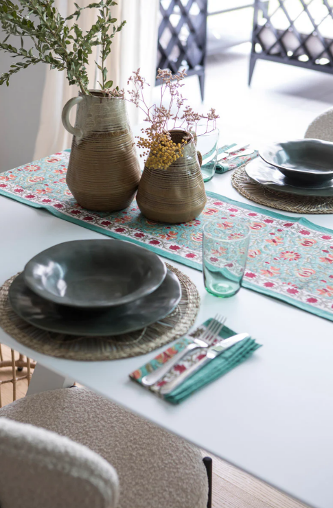 Este camino de mesa no solo aporta color y vida a tu comedor, sino que también crea una atmósfera tranquila y acogedora, perfecta para cualquier ocasión