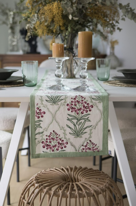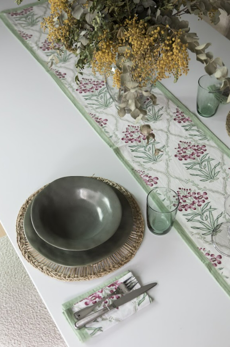 Este camino de mesa con estampado en forma de orquídea está inspirado en la naturaleza, evocando sensaciones de inspiración y contemplación. Los colores brillantes y clásicos del diseño hacen que sea perfecto para salones pequeños, ya que ayuda a crear la sensación de amplitud y luminosidad.
