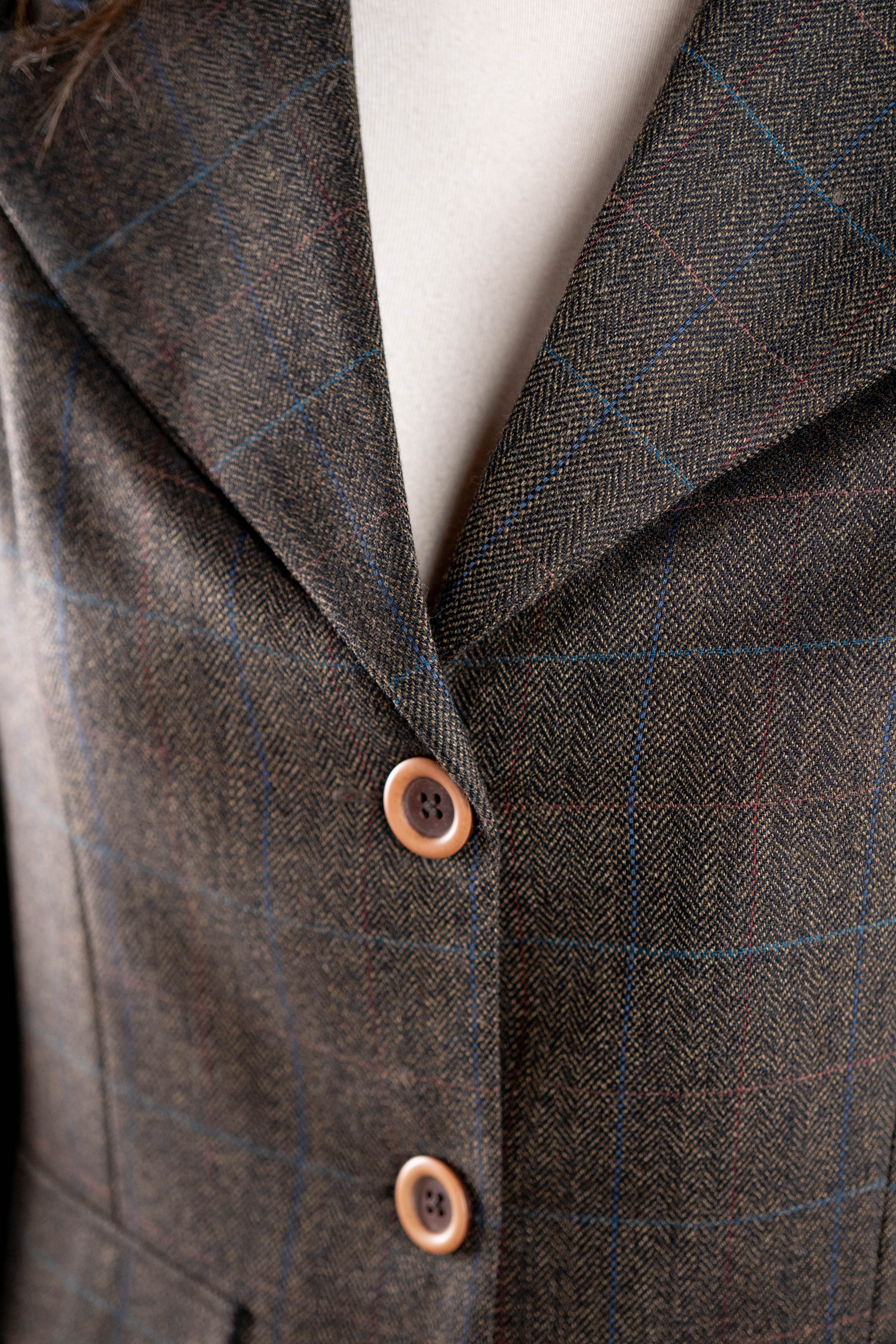Blazer tartán marrón pata de gallo con cuadros en azul marino eléctrico, rojo cherry y naranja
