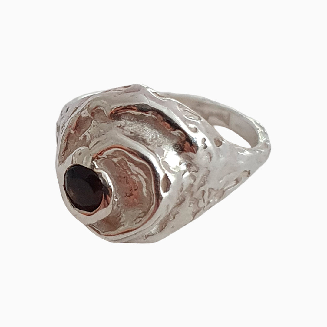El anillo Castillo SB evoca el camino que conduce a la cima del Castillo de Santa Bárbara en Alicante. Su diseño audaz simboliza cada paso firme y la fuerza que nos impulsa a superar los desafíos a lo largo del recorrido. Cada pieza está elaborada a mano en plata de ley 925 e incluye piedras naturales semipreciosas. No hay dos piezas iguales, lo que hace que cada una sea verdaderamente única.