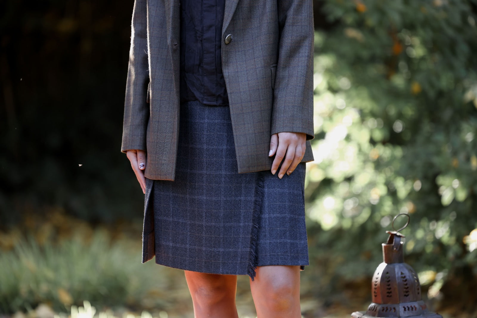 Falda Outlander, 100% lana, estilo kilt, con recortes en terminación de distintos gajos.