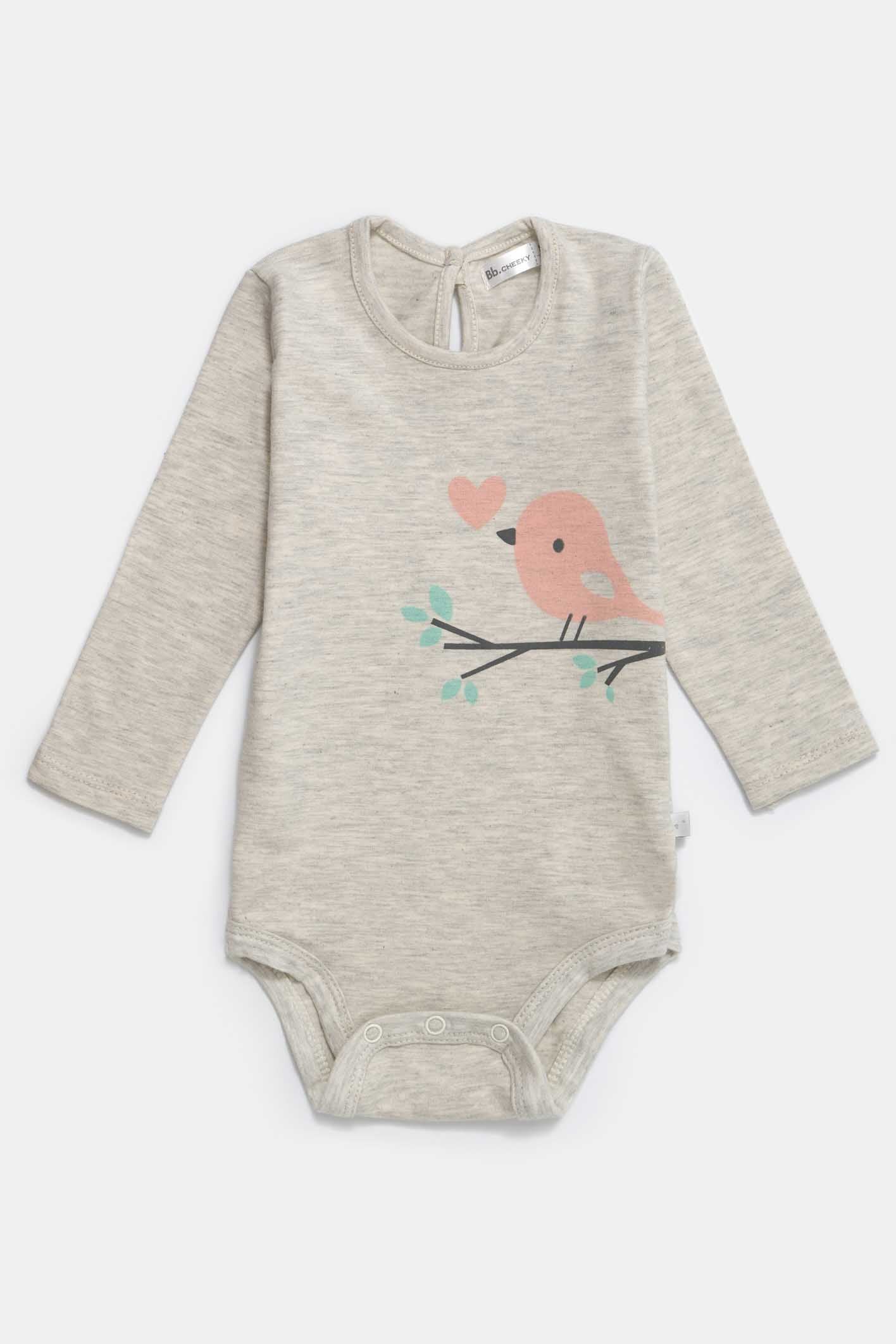 Nuestro Body liso Brisa tiene manga larga, cuello redondo, estampa de pájaro, cartera gota en la espalda y botones a presión en la entrepierna para facilitar el acceso. Tejido hecho en 92% algodon 8% elastano.