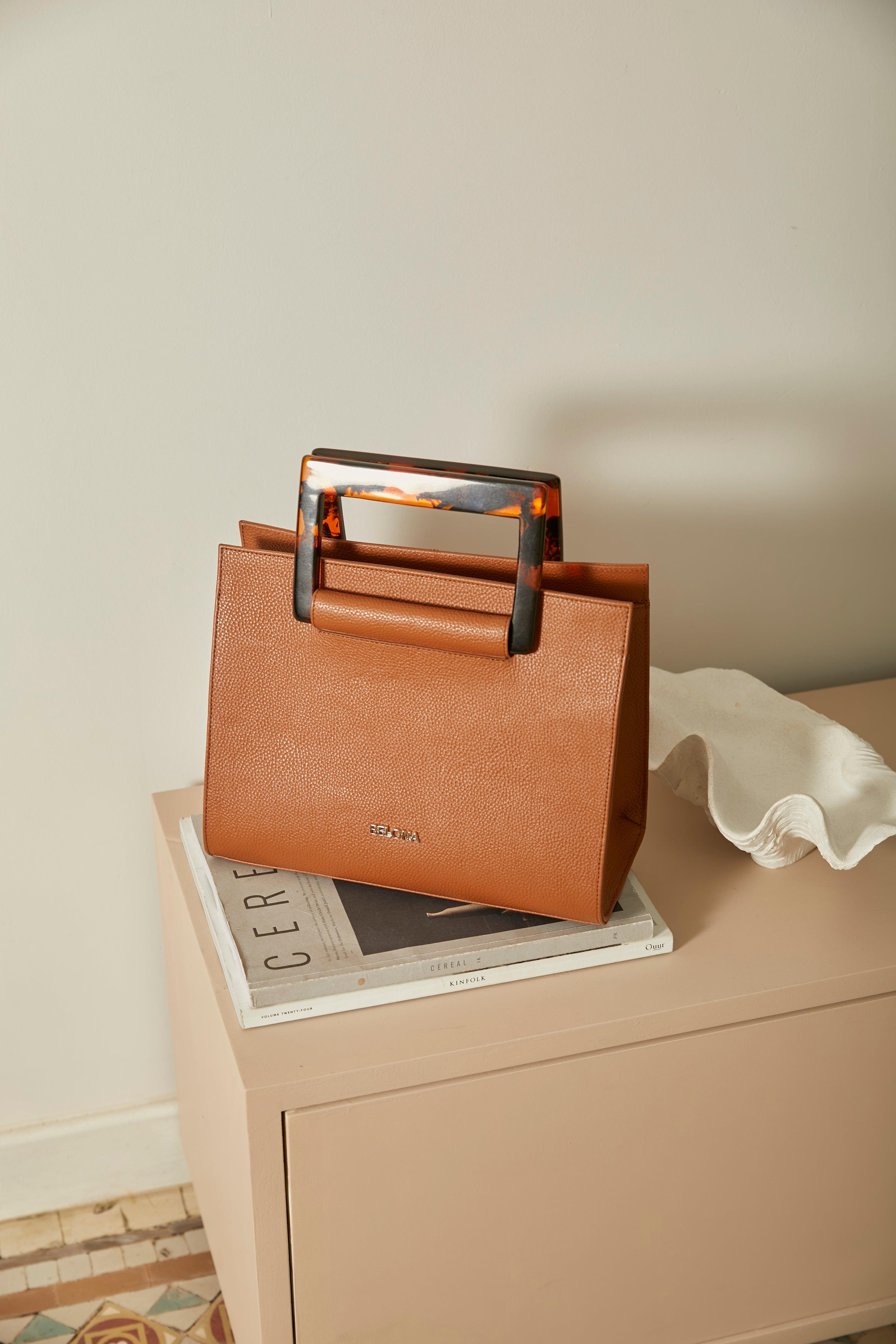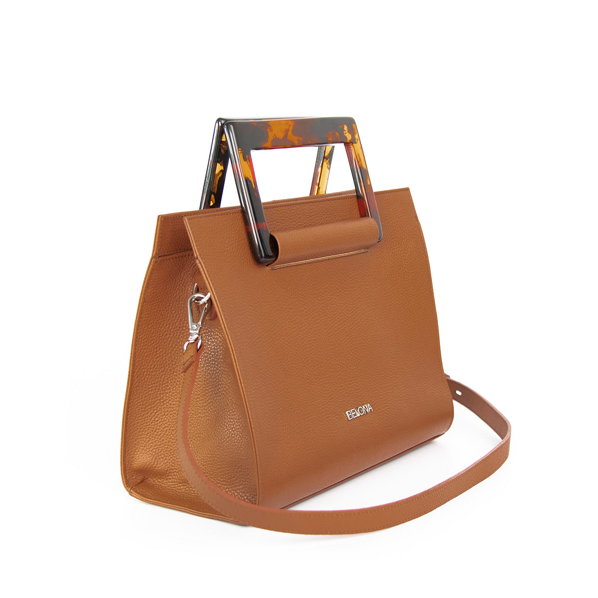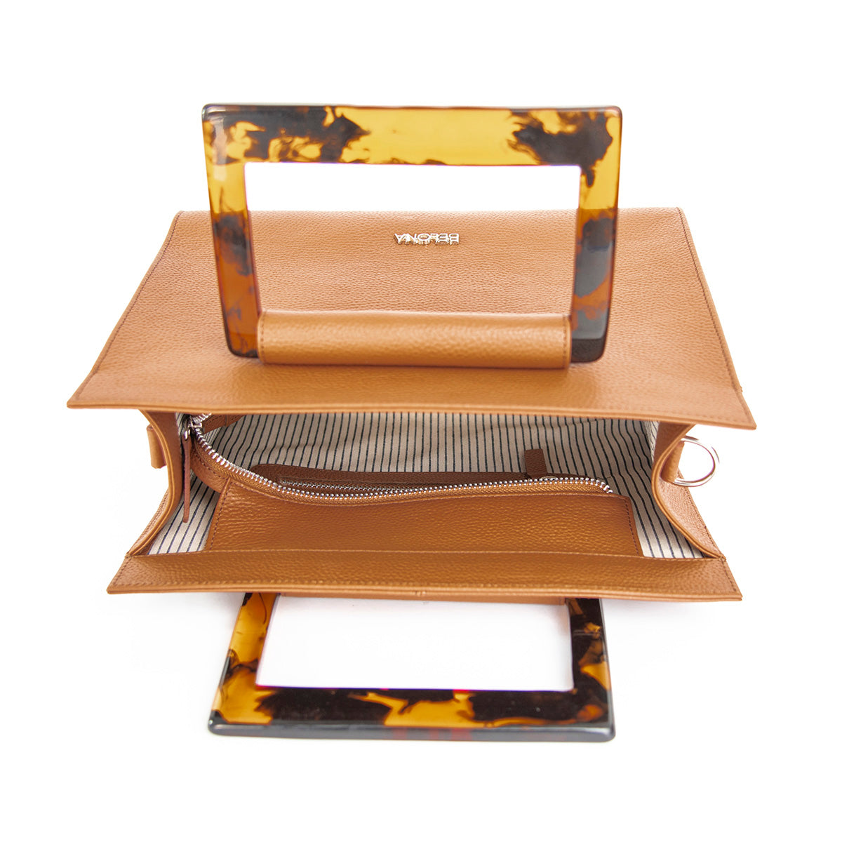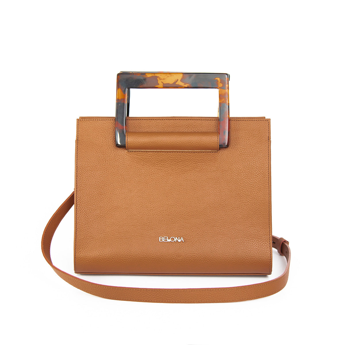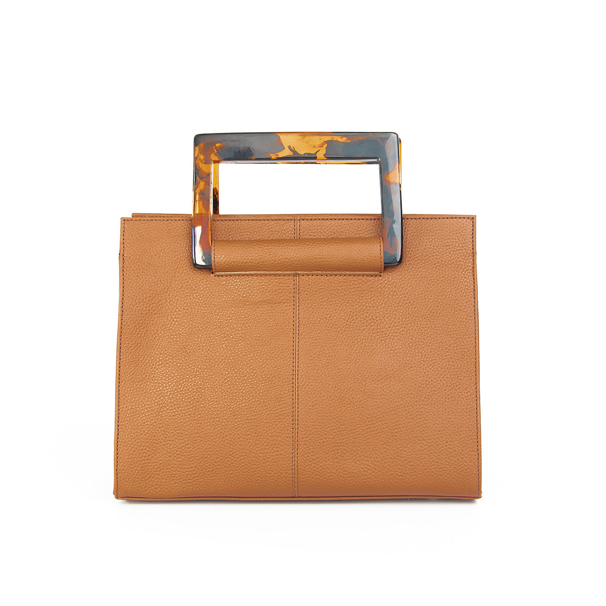Cuerpo de cuero combinado con manija corta de resina a tono.