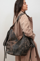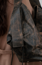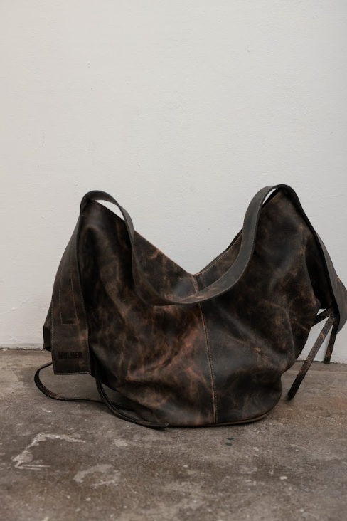 Bolso de CUERO forrado. Esta icónica tote bag luce una correa ancha reforzada a tono en cuero desgastado vintage.
