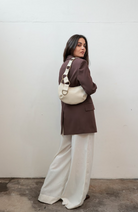 Bandolera de CUERO al hombro, forrada y con bolsillo interno.