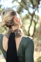 Talla única. Queda pegado al cuello como si fuera un choker.
