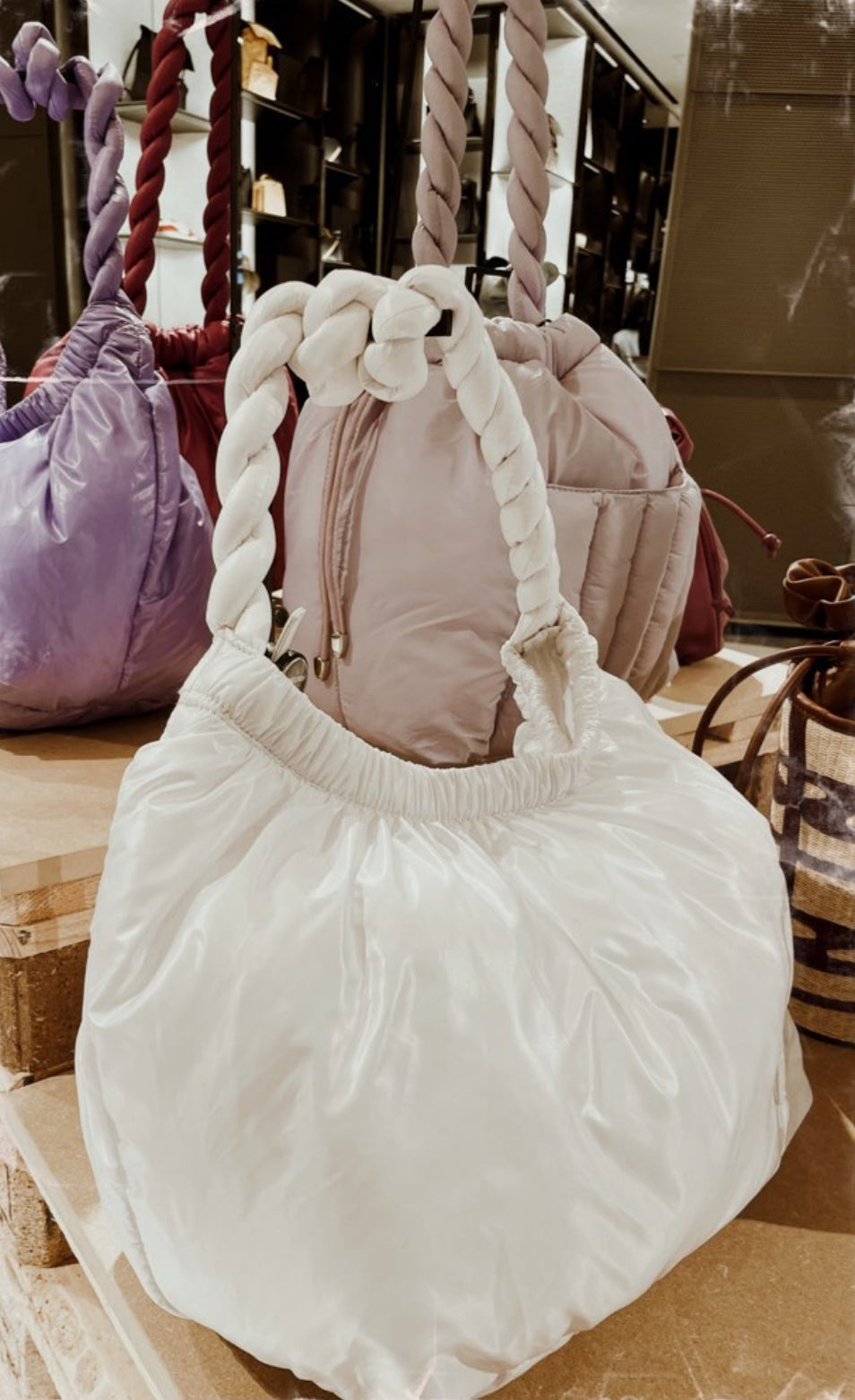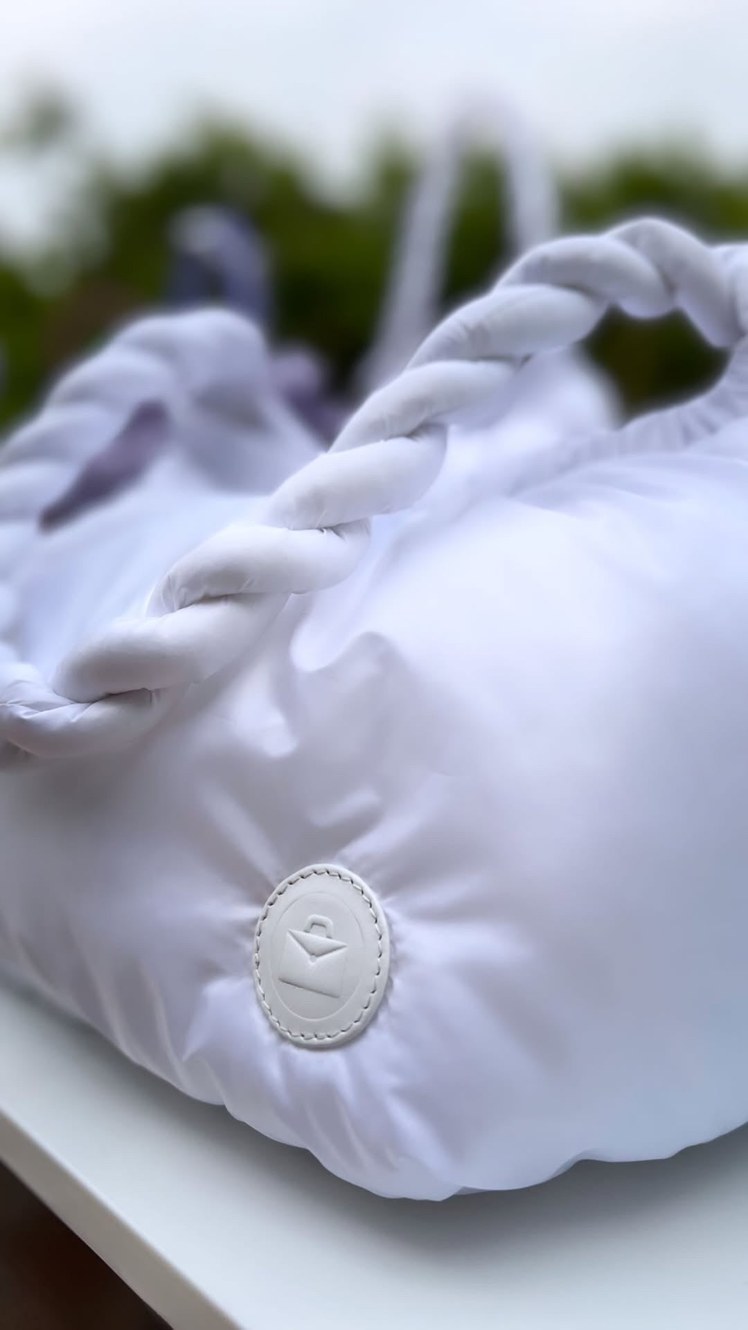 Este bolso acolchado de volumen suave y estilo audaz fusiona funcionalidad con un diseño moderno y despreocupado. Fabricado en nylon reciclable de acabado sutilmente brillante, es ligero, lavable y perfecto para el ritmo contemporáneo.