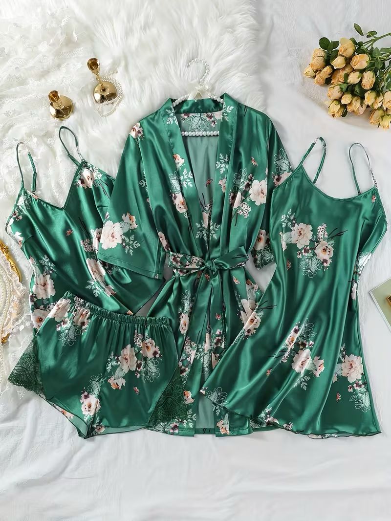 PIJAMA SATÉN 4 PIEZAS-VERDE – JARDIN POÉTIQUE
