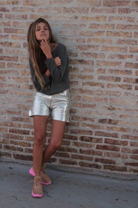 SHORTS CUERO | PLATA