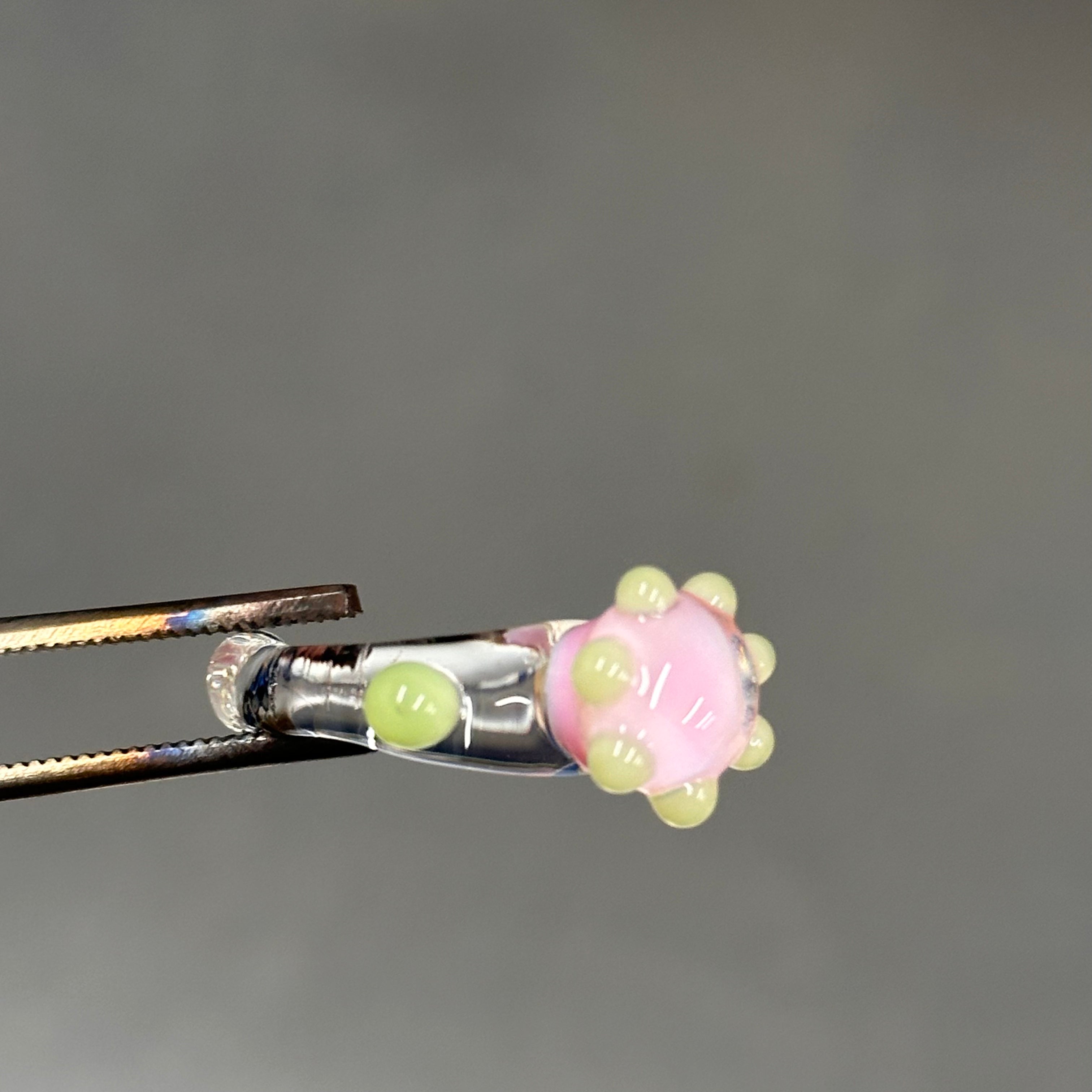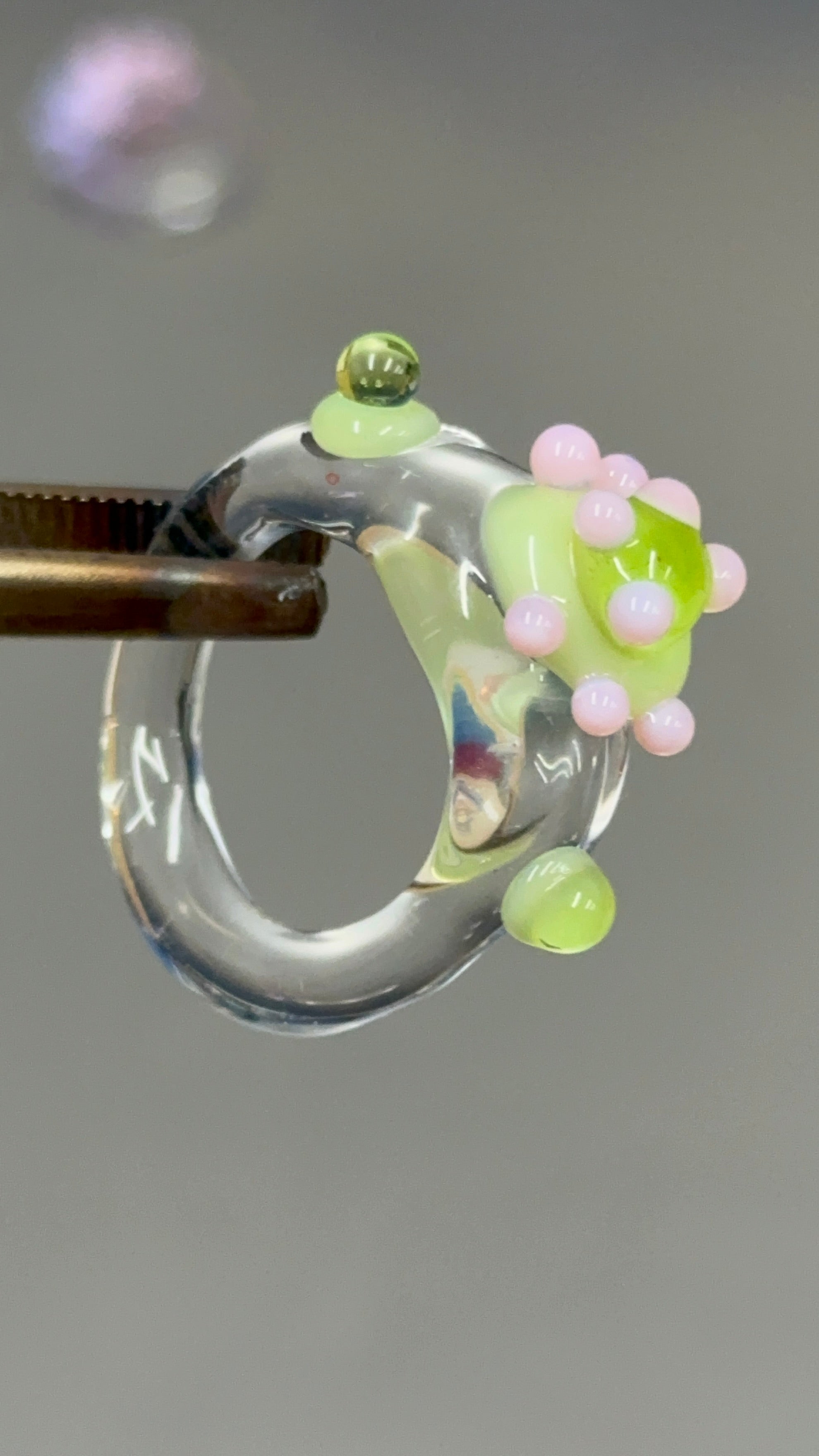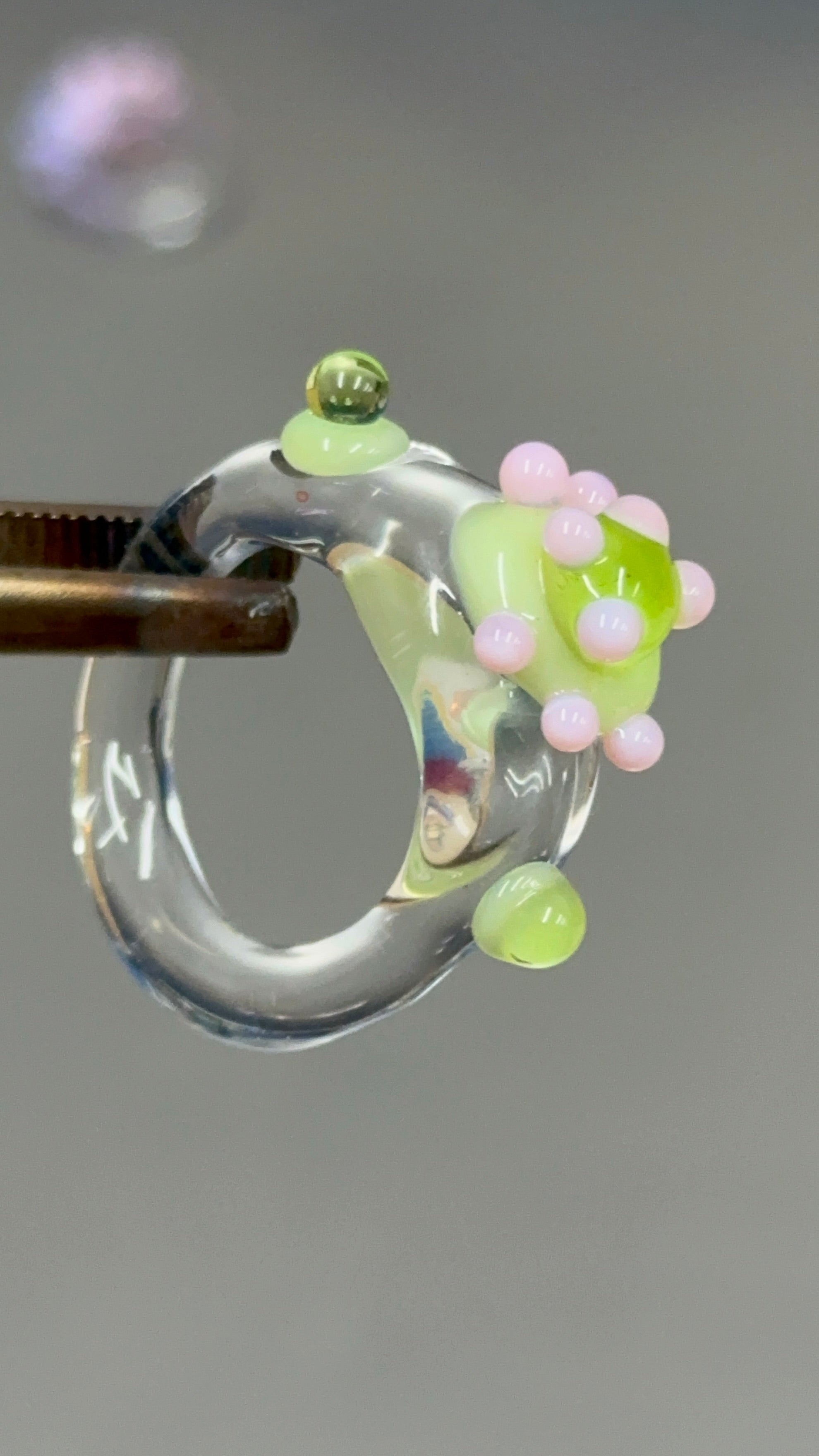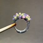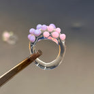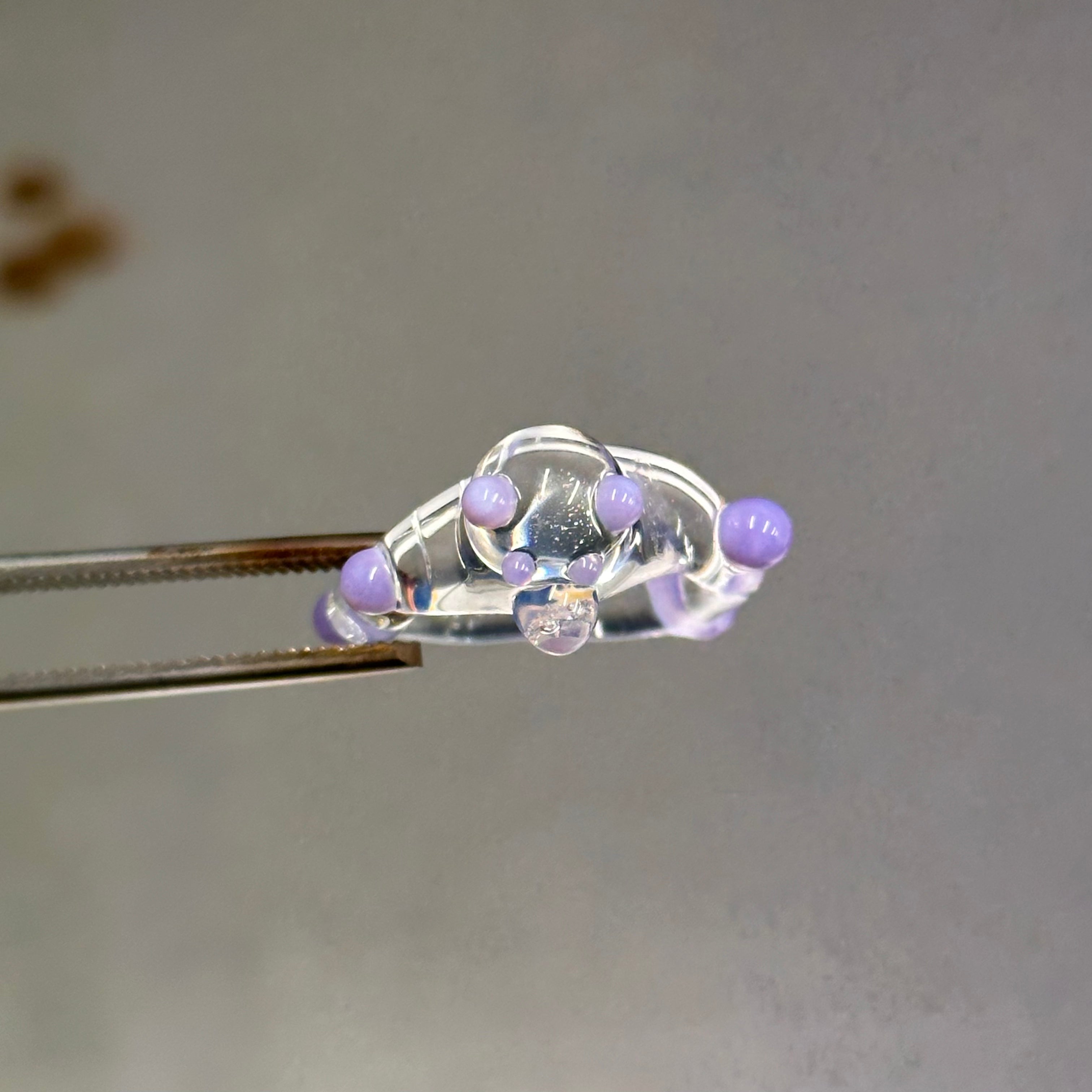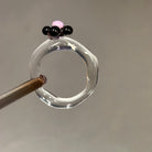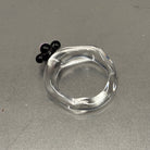 Anillo hecho a mano con vidrio de borosilicato, un material resistente, ligero y con una transparencia preciosa.