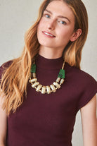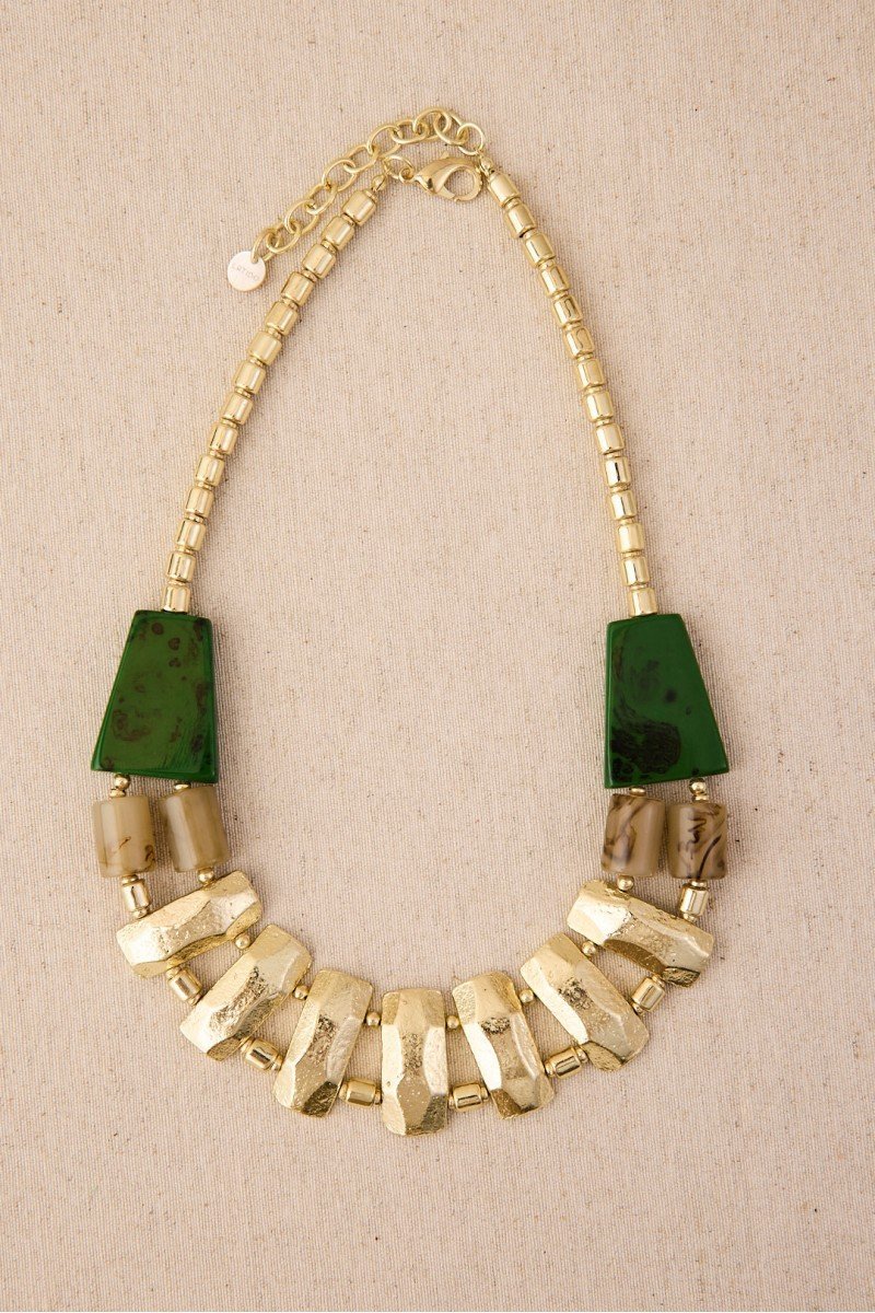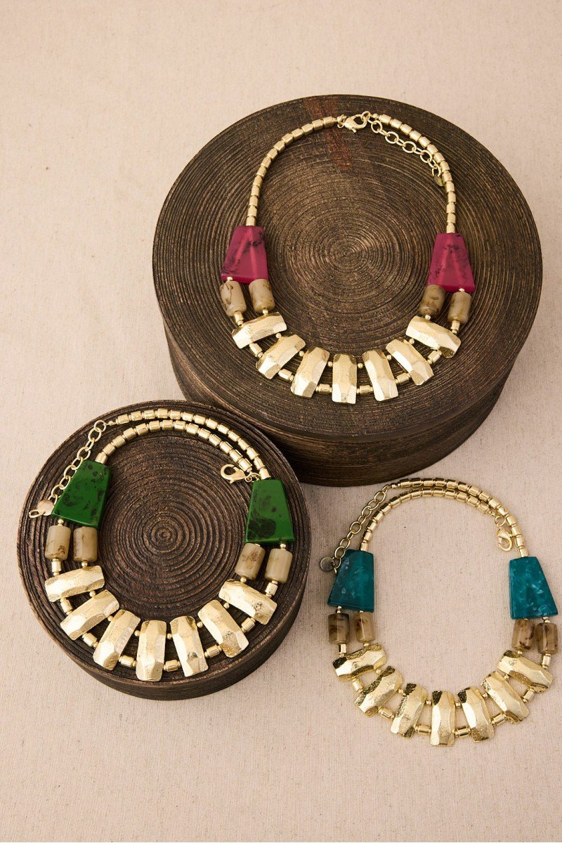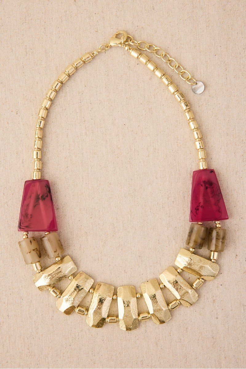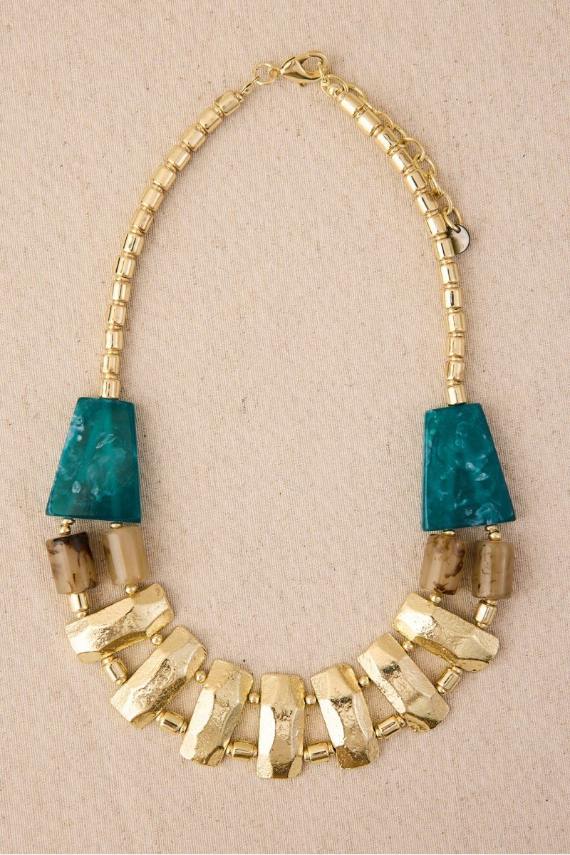 Diseño de cadena de latón con baño de oro decorado con pequeñas piezas de resina que le aportan color. Un collar atemporal con un toque delicado y femenino.