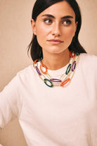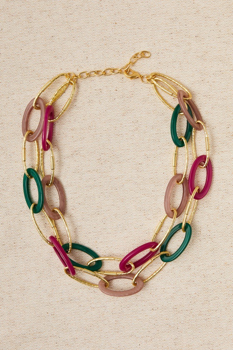 Diseñado para destacar, este collar corto doble vuelta eslabones latón y resina es perfecto para un estilo casual que brilla en cualquier evento. Su diseño de doble vuelta añade volumen y textura, convirtiéndolo en una pieza clave para cualquier ocasión.
