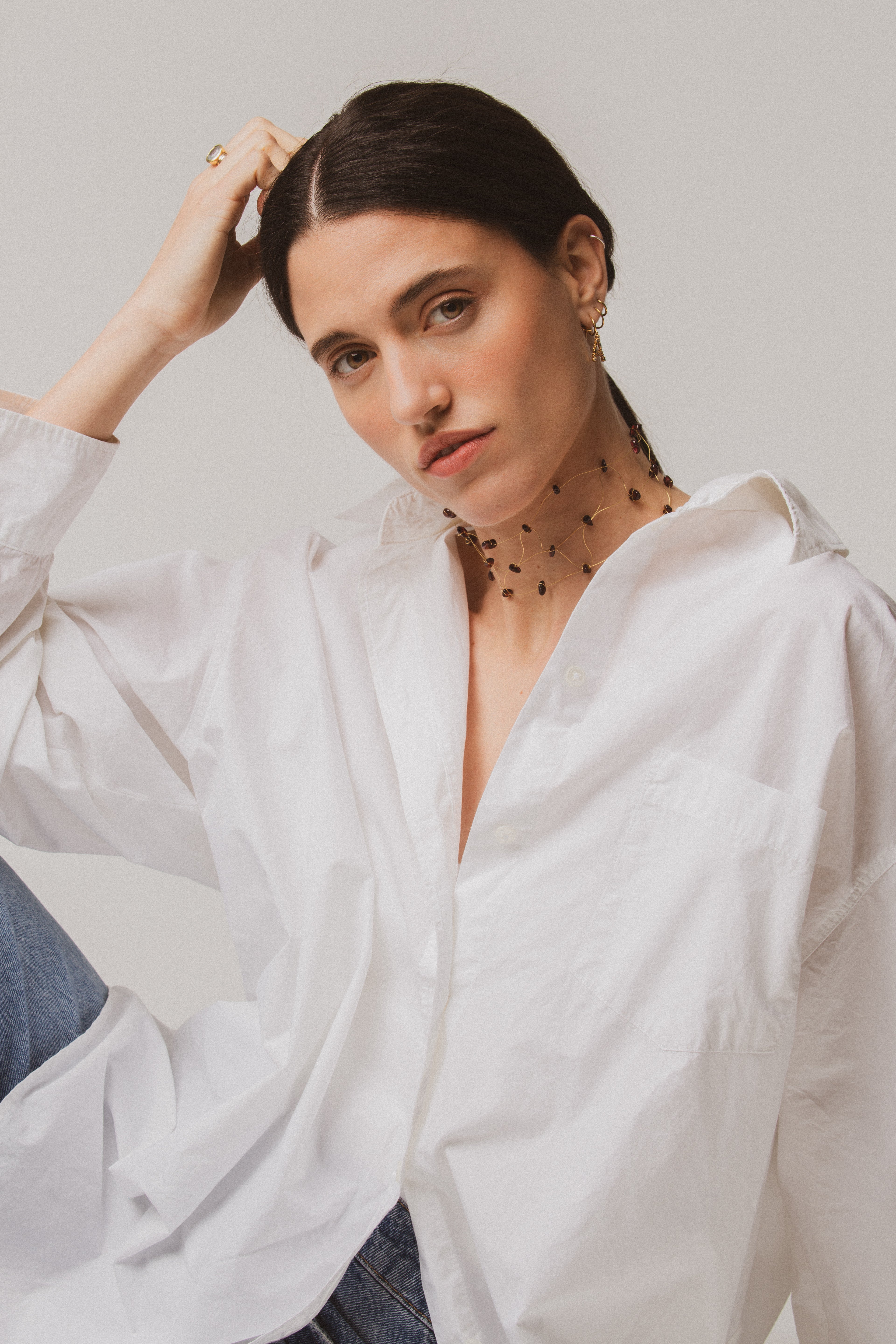Un esencial atemporal. El Choker LAINE está diseñado para elevar cualquier look, desde tu día a día hasta una ocasión especial. Hecho a mano en España con un baño de oro de alta calidad, su silueta minimalista y elegante lo convierte en la pieza perfecta para llevar sola o combinada