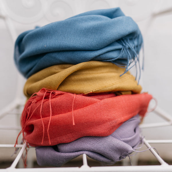 Chal rectangular en mezcla de lana de baby alpaca y seda con acabado liso y terminaciones en flecos