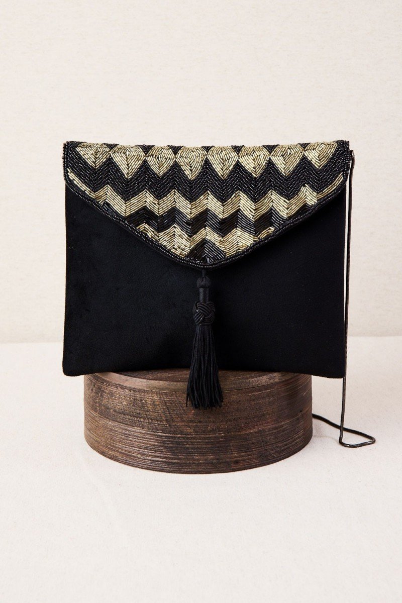 8014BO-U Bolso solapa bordada zig-zag oro