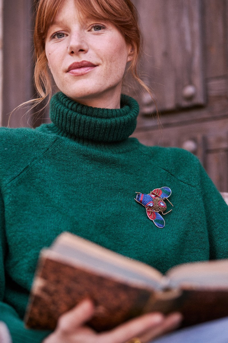 Este broche abeja captura la esencia del estilo boho con su diseño detallado en resina y tejido. Es el complemento perfecto para quienes buscan añadir un toque natural y creativo a su look.