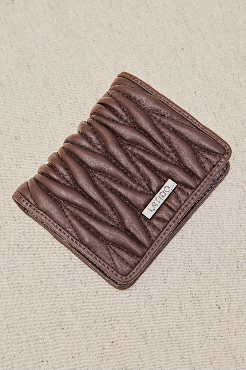 Un diseño compacto con textura acolchada y detalles en relieve que elevan su aspecto sin renunciar a la practicidad. Esta cartera con cierre de broche y compartimentos interiores de acabado en piel ecológica y la placa metálica con el logo aportan un toque sofisticado.