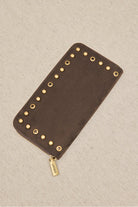 De formato amplio y cierre seguro, esta cartera con detalles metálicos combina carácter y organización interior. Su estructura rígida y diseño frontal la convierten en un básico con actitud. Hecha en piel ecológica y metal.