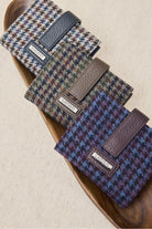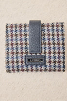 Esta cartera con cierre de broche y compartimentos interiores juega con el contraste de texturas: lana de espiga y piel ecológica en una silueta práctica. Perfecta para quienes buscan funcionalidad con un punto retro.