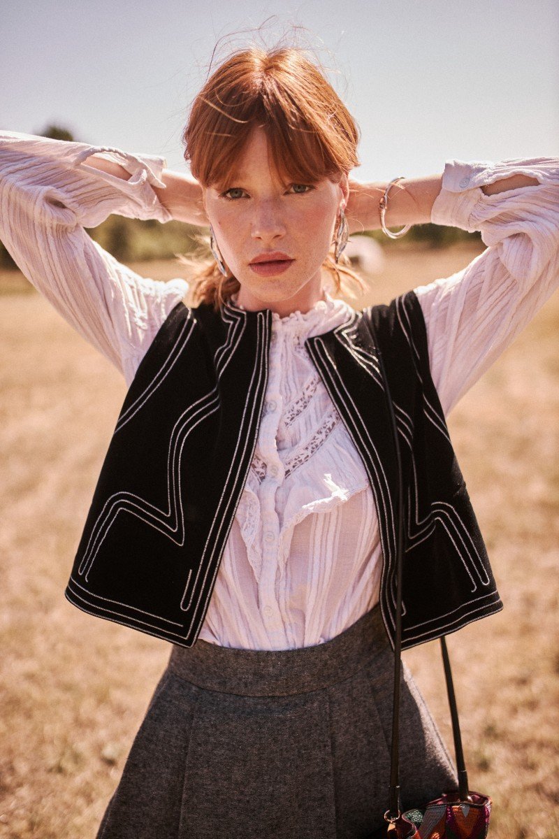 Añade un toque moderno y chic con este Chaleco terciopelo bordado líneas. Con un estilo que refleja Chic, esta prenda es perfecta para quienes buscan un equilibrio entre moda y funcionalidad. Añade un toque de sofisticación a tus looks cotidianos.