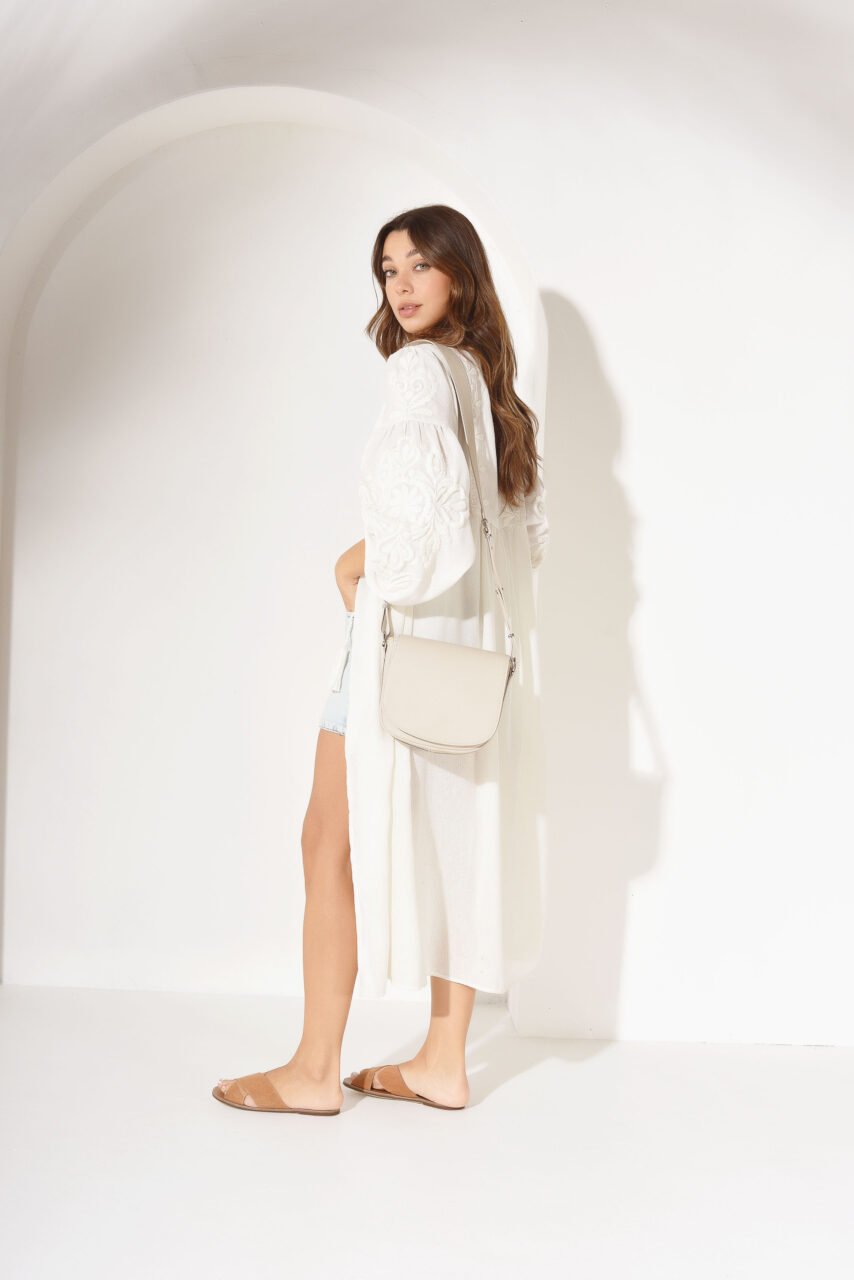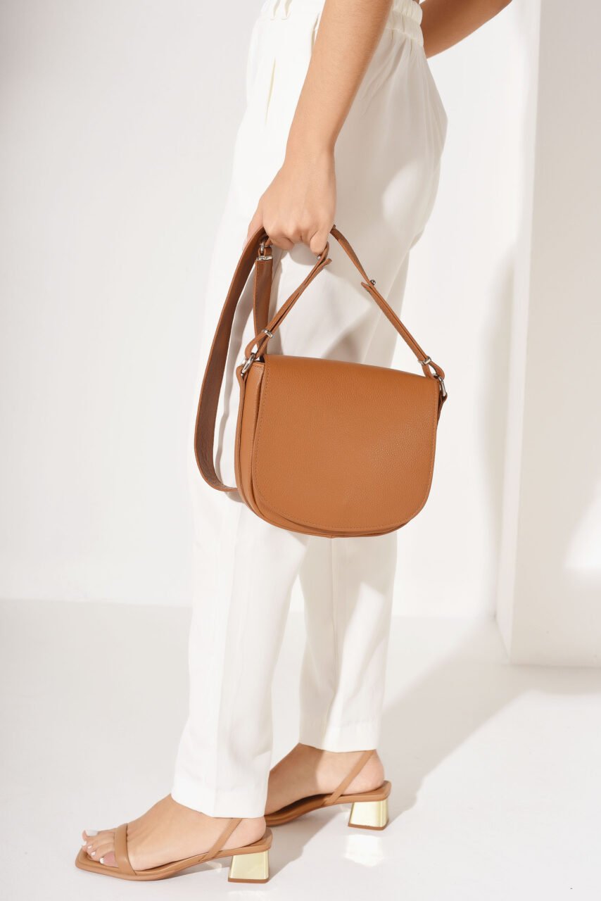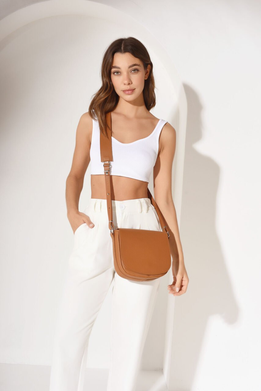 Bandolera mediana confeccionada en piel graneada, de tamaño práctico para llevar tus objetos esenciales de manera ordenada y con estilo. Cuenta con una tira regulable, permitiéndote ajustar el largo según tu comodidad, y gemelos para un toque elegante. Con bolsillos internos y externos con cierres para mantener tus pertenencias seguras. Cierra con imán para mayor comodidad.