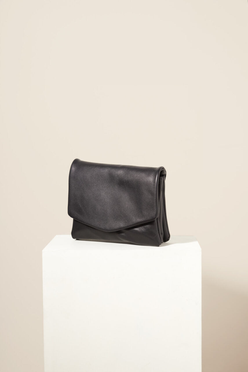 Esta elegante bandolera de cuero vacuno liso es perfecta para quienes buscan un accesorio versátil y sofisticado. Cuenta con tres divisiones internas que permiten organizar tus pertenencias de manera práctica. Su cadena dorada para colgar se puede guardar en el interior, transformándola fácilmente en un sobre para un look más chic. Cierra con un práctico imán para mantener todo seguro. El interior está forrado en lienzo al tono, y los herrajes y la cadena tienen un acabado dorado que le da un toque de lujo.