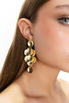 Pendientes flexibles formados por una cascada de círculos con acabado dorado cepillado.