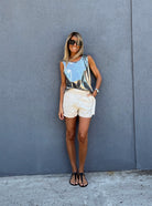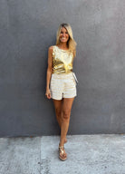 Top confeccionado en tela simil vinilo con espandex con detalle de corte en la espalda. Puede usarse como Top o como chaleco sobre nuestro remeròn Roma o sobre cualquier bàsica.