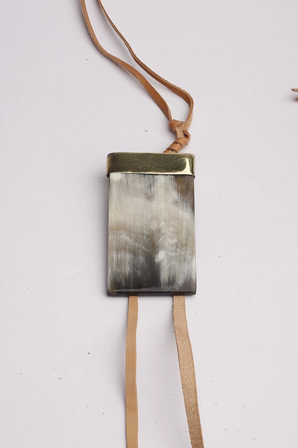El collar Ana Necklace es una pieza única y sofisticada que combina materiales naturales y elegantes para crear un diseño exclusivo. Este accesorio destaca por su colgante rectangular de hueso pulido con detalles de bronce en la parte superior, aportando un contraste cálido y refinado. La cuerda de cuero ajustable completa el diseño, proporcionando versatilidad y estilo atemporal. Ideal para realzar cualquier outfit con un toque artesanal y elegante.