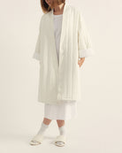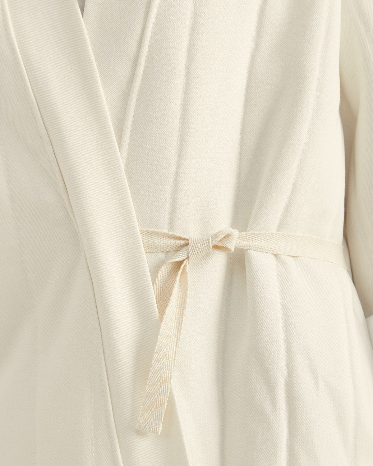 Kimono confeccionado con fibras naturales y efecto matelasse.