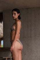 Bombacha vedetina con tiritas en los laterales regulables y frunce en la espalda, embolsada.