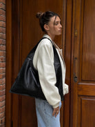 La Leía Tote Negro es la compañera ideal para quienes necesitan llevarlo todo con elegancia. Con un diseño tipo totebag y un tamaño amplio, esta cartera ofrece comodidad sin sacrificar el estilo.