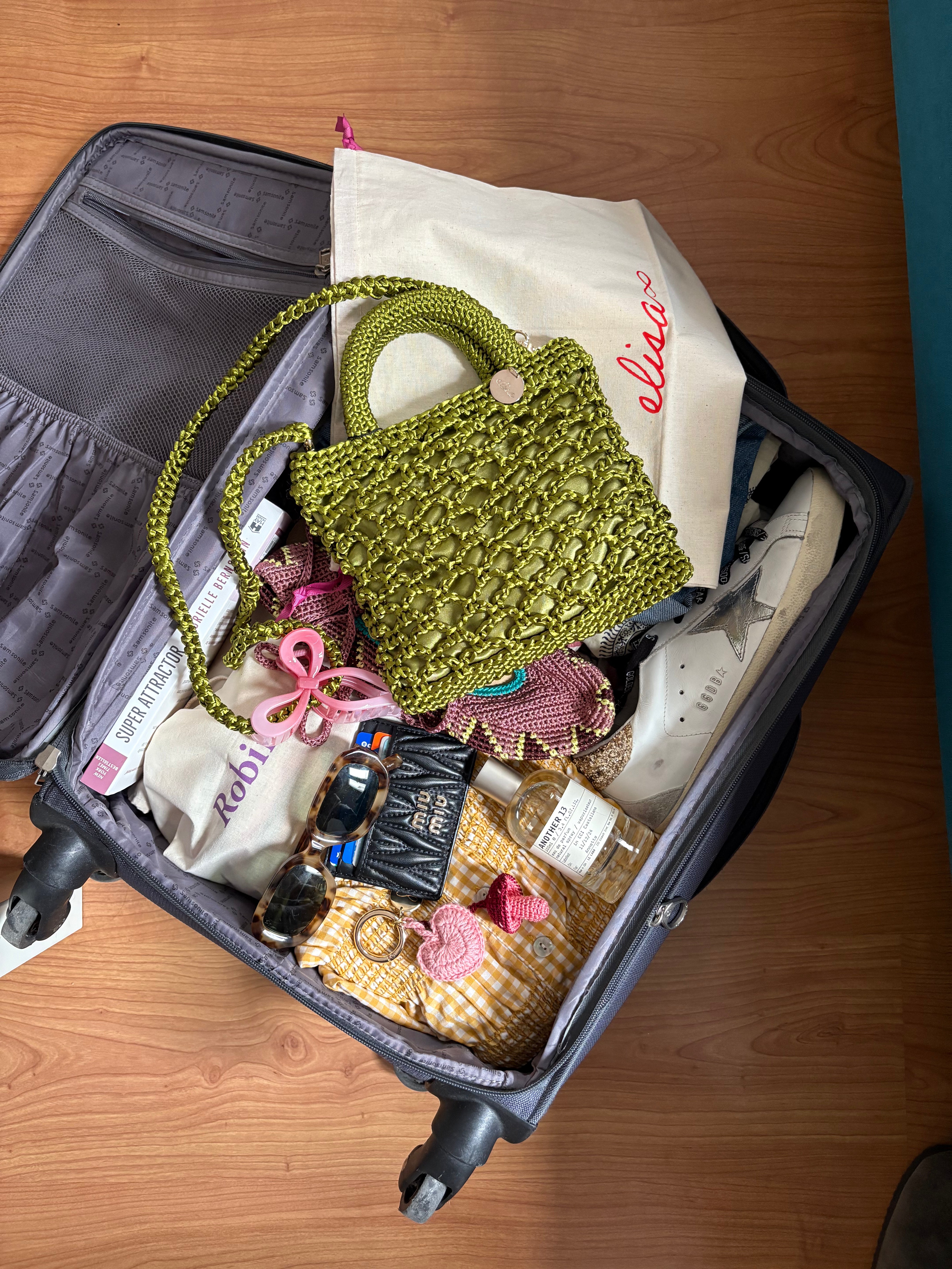Bolso tejido a mano con algodón, un accesorio artesanal y versátil ideal para cualquier ocasión. Su diseño elegante incluye un forro satinado que protege el interior y aporta un acabado sofisticado. Cuenta con un asa corta para llevar en la mano y un asa larga tejida removible para usarlo como crossbody. Su tono beige neutro lo hace fácil de combinar con distintos estilos.