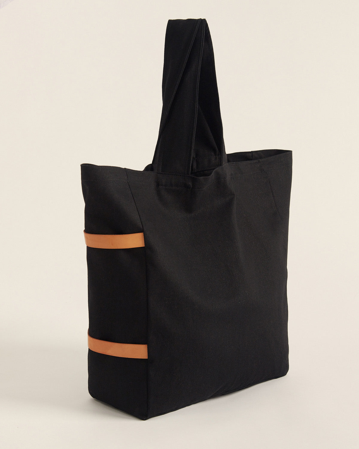 Bolso multiuso confeccionado con fibras naturales y detalles en cuero