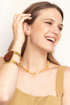 El Brazalete India con Piedra es una pieza única y sofisticada hecha a mano en bronce. Su diseño evocador está inspirado en las tradiciones y la cultura india, incorporando una piedra central que añade un toque de color y elegancia. Este brazalete no solo resalta por su belleza, sino por su capacidad para complementar tanto looks bohemios como más sofisticados. Ideal para quienes buscan un accesorio lleno de significado y estilo.