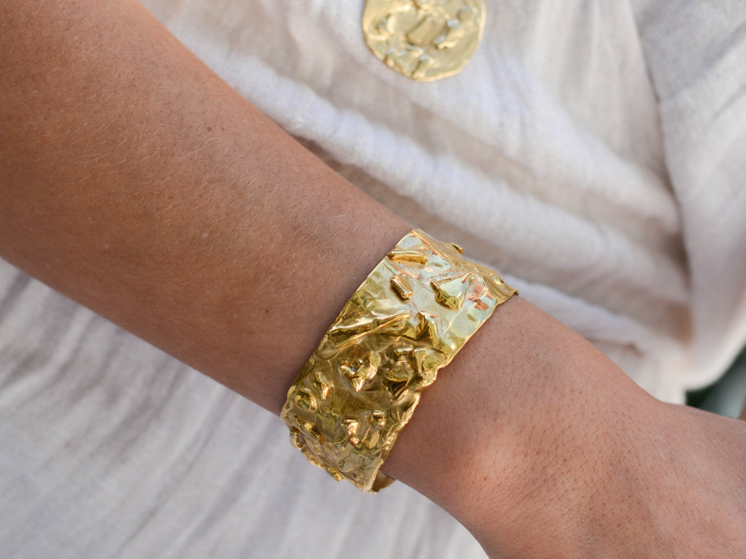 Inspirado en la creatividad y el trazo libre del arte de Picasso, este brazalete de bronce es una pieza única que combina diseño artístico y elegancia atemporal.