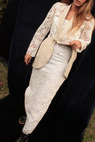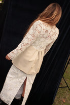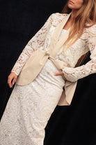 La Bridal Skirt es una falda larga y recta con un tajo en la parte posterior, diseñada para ofrecer elegancia y movimiento. Combinada con el Bridal Blazer, forma un conjunto perfecto para una novia moderna, fina y sofisticada, que busca un look elegante pero canchero.