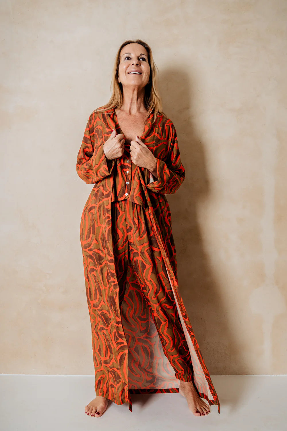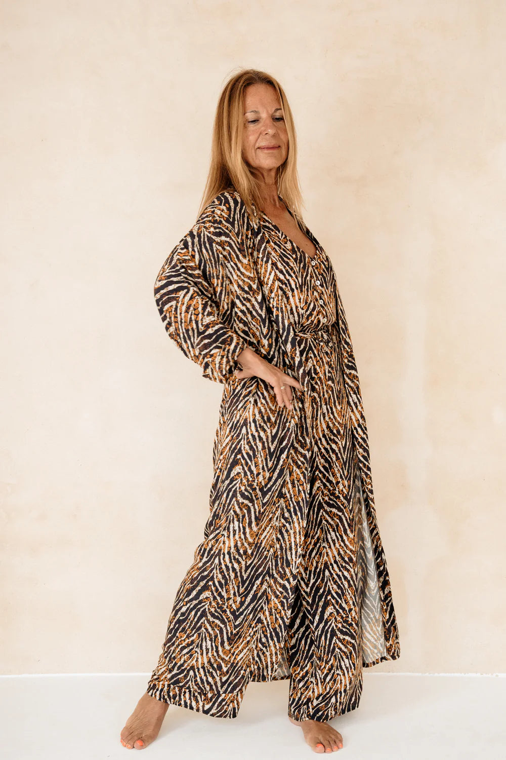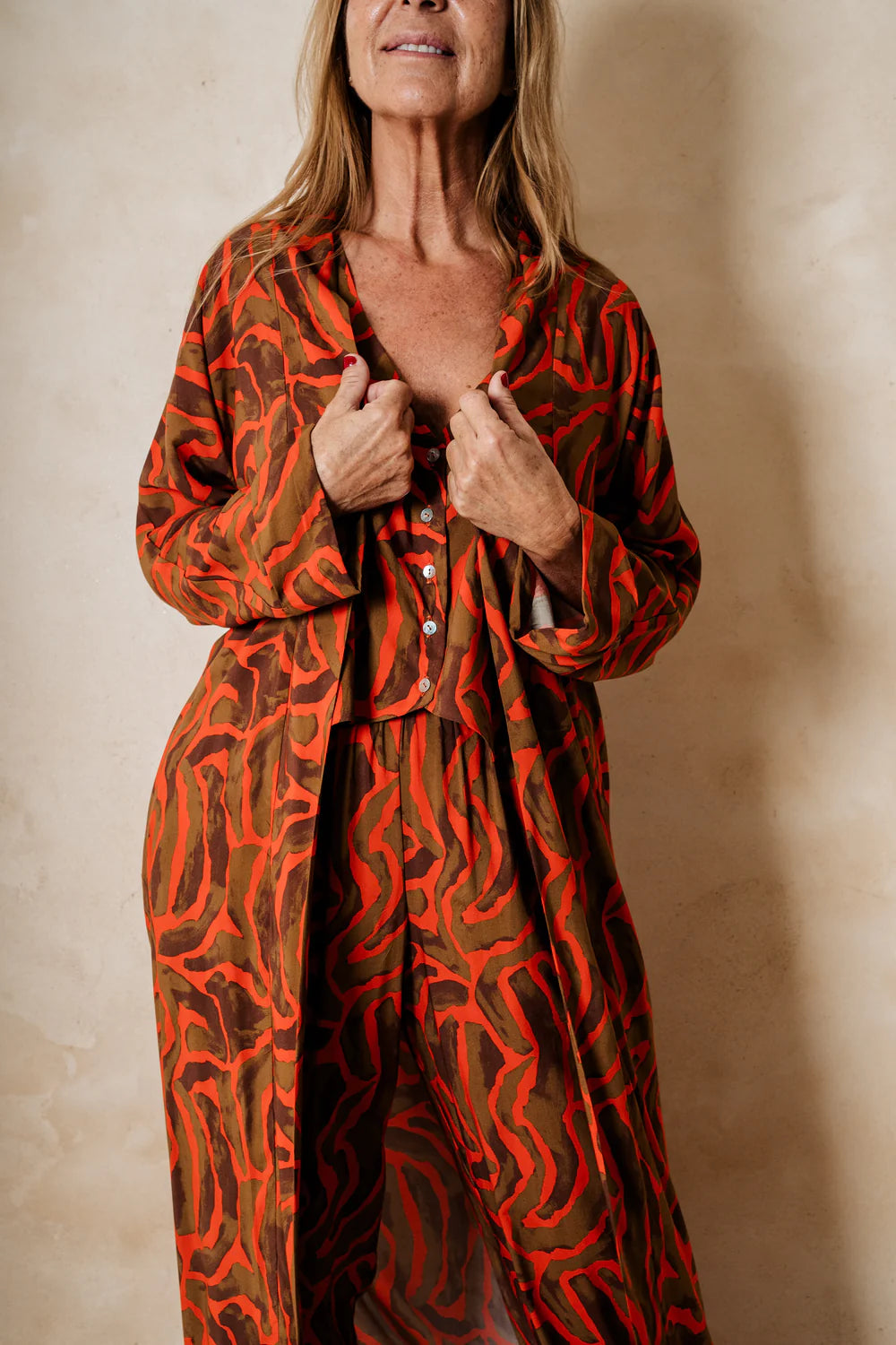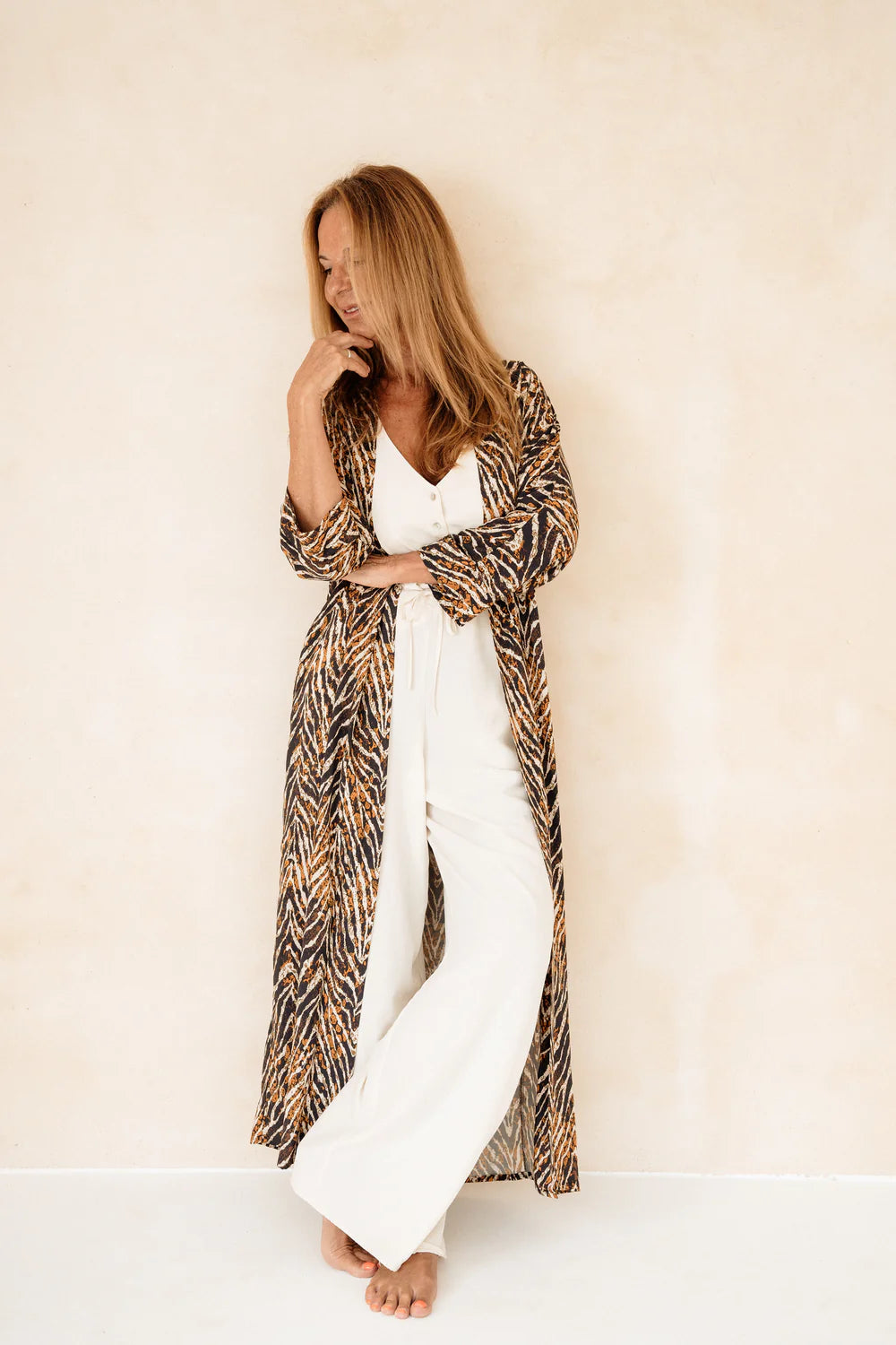 Chaqueta fluida y larga, diseñada en un tejido modal 100% suave y elegante es perfecta para completar tus looks. La chaqueta Cloe es una prenda versátil y atemporal, diseñada para superponerse con elegancia sobre pantalones, cuerpos, vestidos o faldas y tops. También conocida como casaca o guardapolvos, está confeccionada en un tejido suave y ligero que permite un movimiento fluido, estilizando la silueta de quien la lleva. Su diseño sofisticado la convierte en una elección ideal para diversas ocasiones, aportando un toque de distinción y modernidad a cualquier atuendo. Materiales: Cloe está confeccionada 100% en TENCEL/Modal , es una fibra proveniente de madera cosechada de manera consciente y sustentable. Es un un material suave y transpirable que es conocido por su durabilidad y resistencia a encogerse.