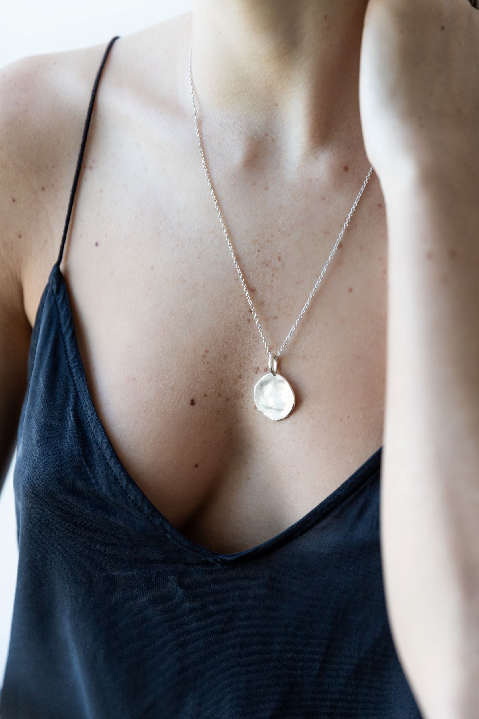 El Colgante Moneda Irregular es una pieza única que combina la tradición de una moneda con un diseño moderno y audaz. Su forma irregular y texturizada le otorga un carácter distintivo, convirtiéndolo en un accesorio que se destaca por su simplicidad y sofisticación. Fabricado en plata de ley 925, este colgante es ideal para quienes buscan un detalle de estilo que se pueda llevar en cualquier ocasión, desde un look casual hasta un atuendo más formal.