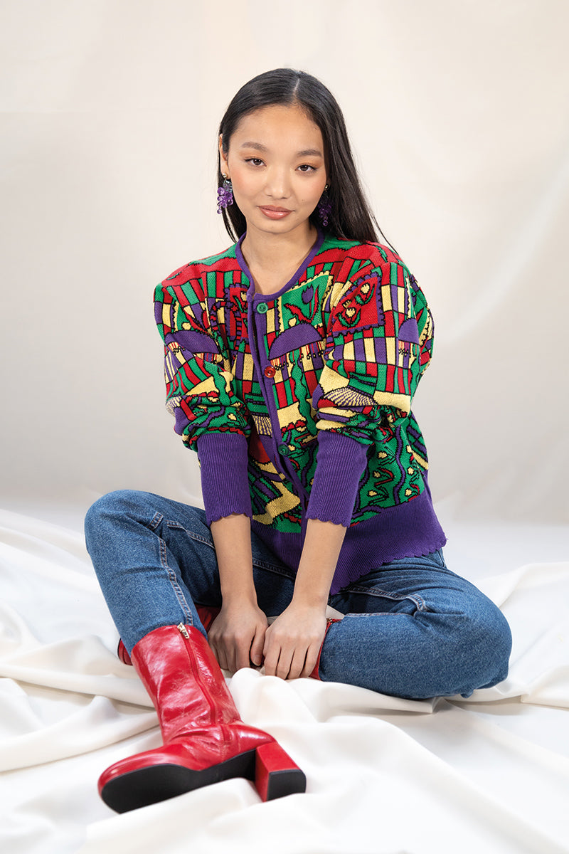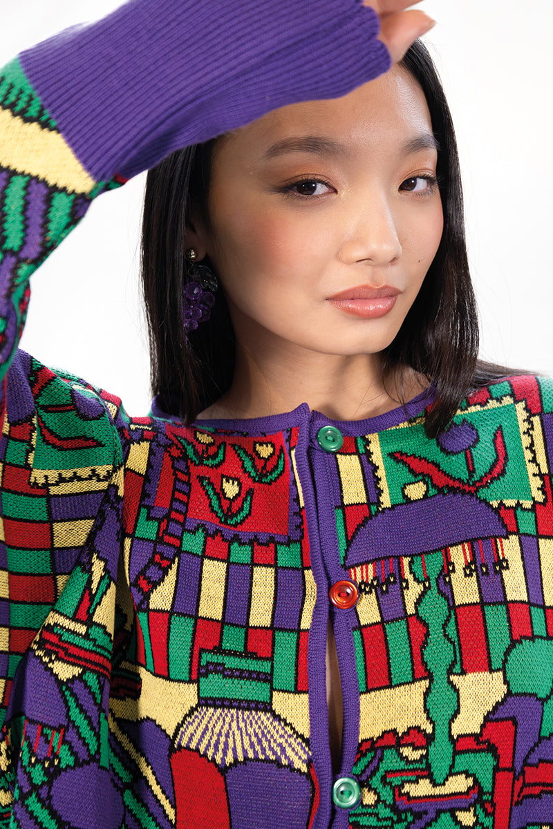 Este cardigan tipo croquis en tono violeta con cuello redondo y manga larga es una prenda versátil y cómoda que agrega un toque elegante y moderno a tu vestuario. Su cierre de botones en la parte delantera facilita el uso y le da un estilo clásico, mientras que su tejido mixto de algodón y poliéster proporciona suavidad y resistencia. Perfecto para cualquier ocasión, se puede usar sobre una camiseta o para completar un look más formal.