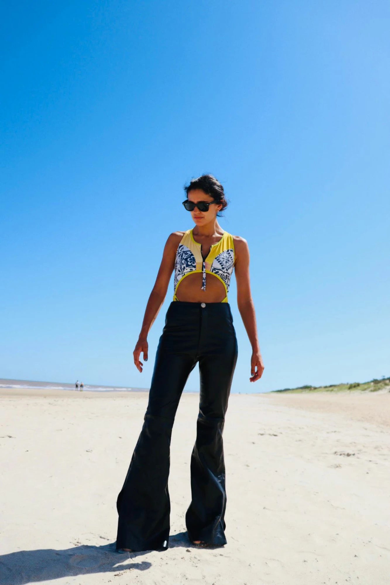 Ha llegado un nuevo modelo de Leather Pants que redefine lo que conocemos como jeans. Este pantalón, con corte formal y acampanado en la parte inferior, ofrece un estilo sofisticado y elegante, muy alejado de la estructura típica de un vaquero.