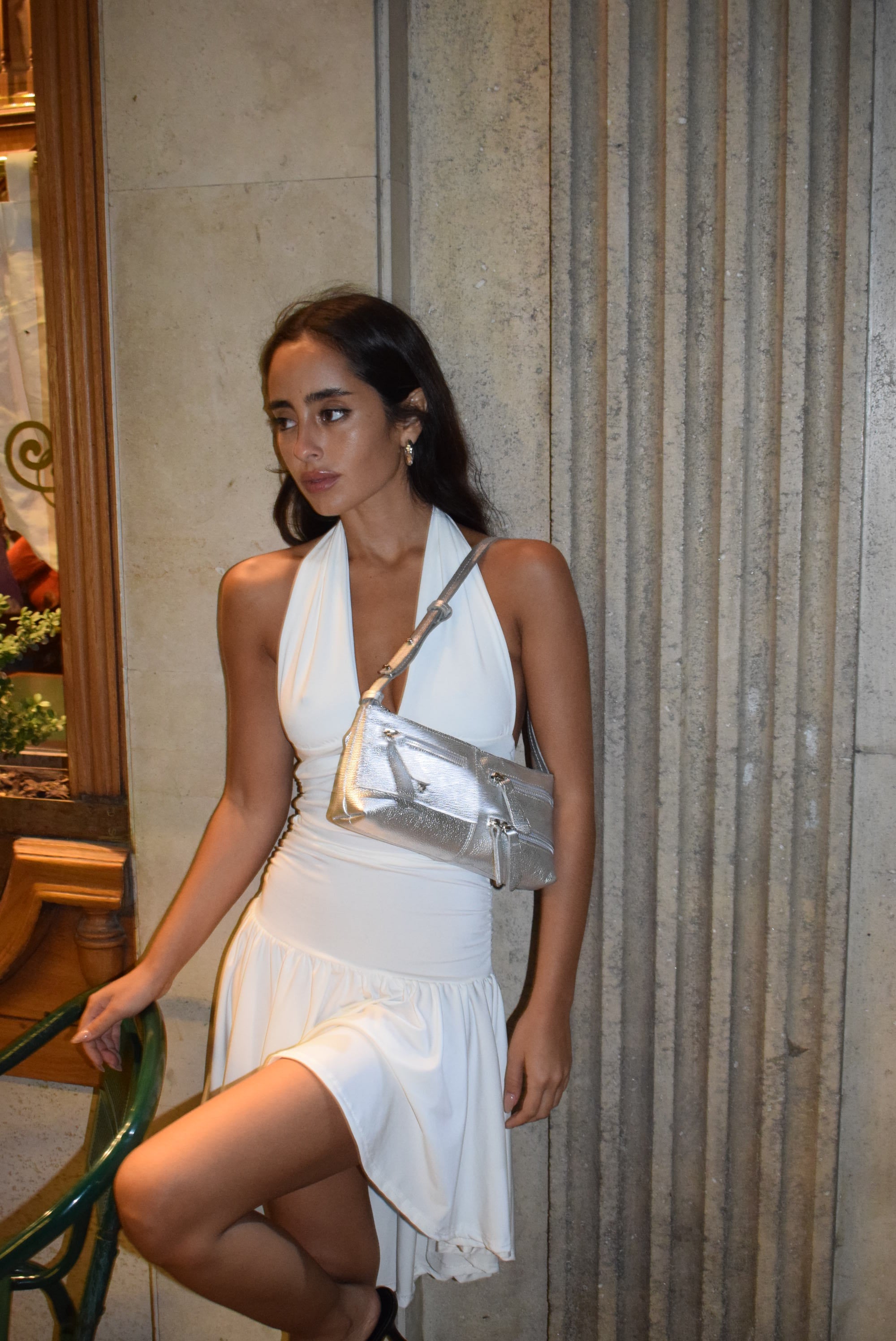 El Bolso Zipper Plata es un accesorio sofisticado y funcional, ideal para complementar cualquier look. Su diseño moderno y elegante ofrece comodidad y practicidad, con un acceso seguro mediante cierre y detalles distintivos.