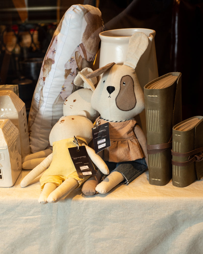El Muñeco de Tela es una pieza artesanal única, realizada a mano con tintes naturales y géneros bordados. Su relleno de vellón siliconado le otorga una suavidad especial, ideal para abrazar. Los detalles de la carita están bordados a mano, dándole una expresión cálida y única.