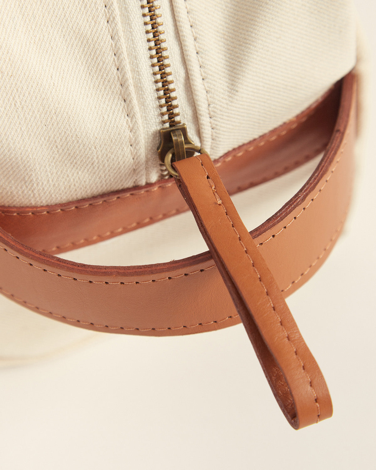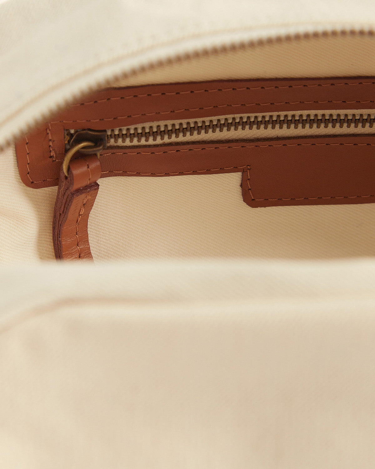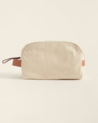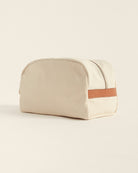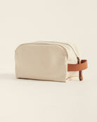 Neceser confeccionado con fibras naturales, interior de algodón y detalle de cuero.