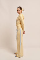 Tiro medio-bajo, ajustable. Pierna amplia tipo palazzo.