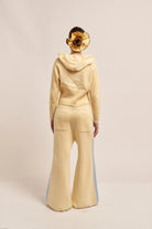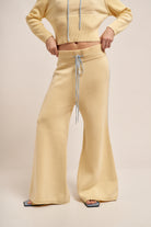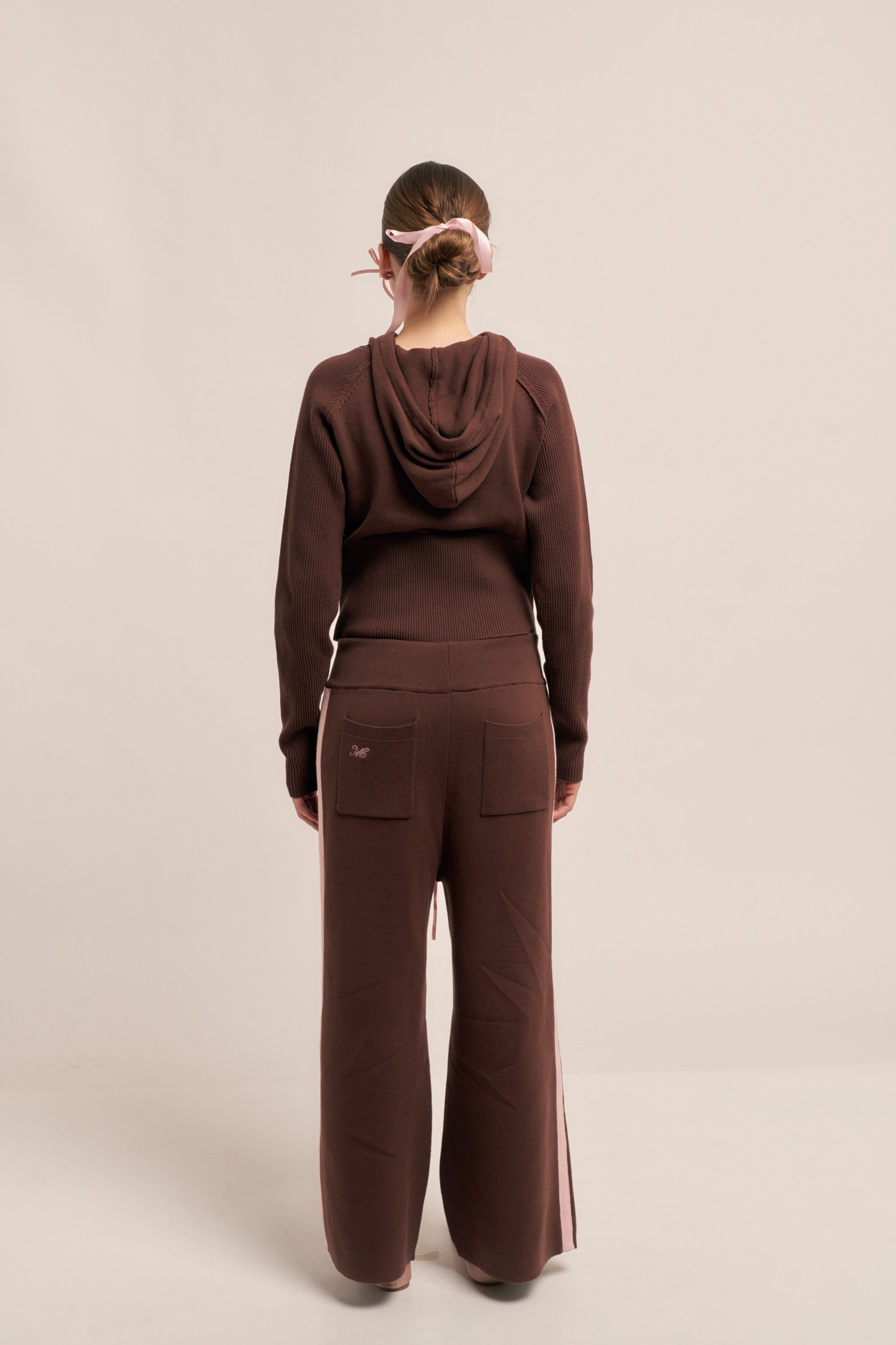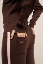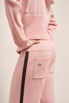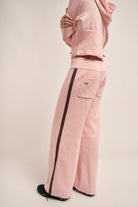 Pantalón de punto con cintura elástica , lazo ajustable en contraste y raya lateral en contratono.